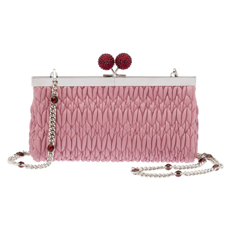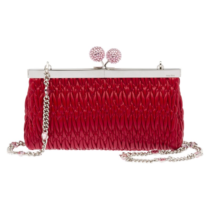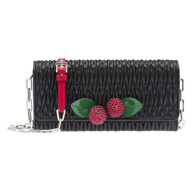 Exclusively for the month of love, Miu Miu is offering its fashion aficionadas the loveliest capsule collection, exuding nothing but love and romance. The collection translates into an amalgamation of the luxury house’s traditional values with a deep-rooted pop-cultural experimentation. Using top-notch handcrafted materials and a luxuriously vibrant color palette, the feminine Miu Miu assortment of leather goods features romantic motifs, such as sensual cherries on a bed of green crystal leaves that beautifully adorn the clutches, bejeweled red hearts and an exclusive “Miu Miu Loves” logo.