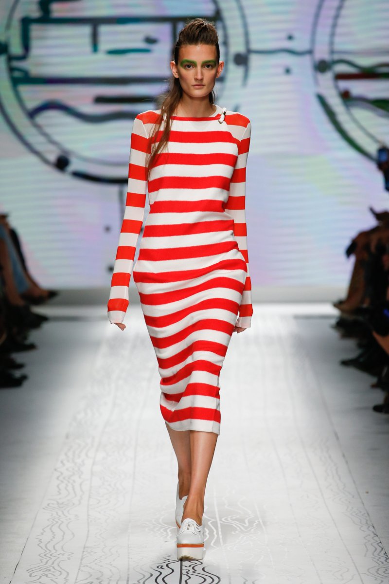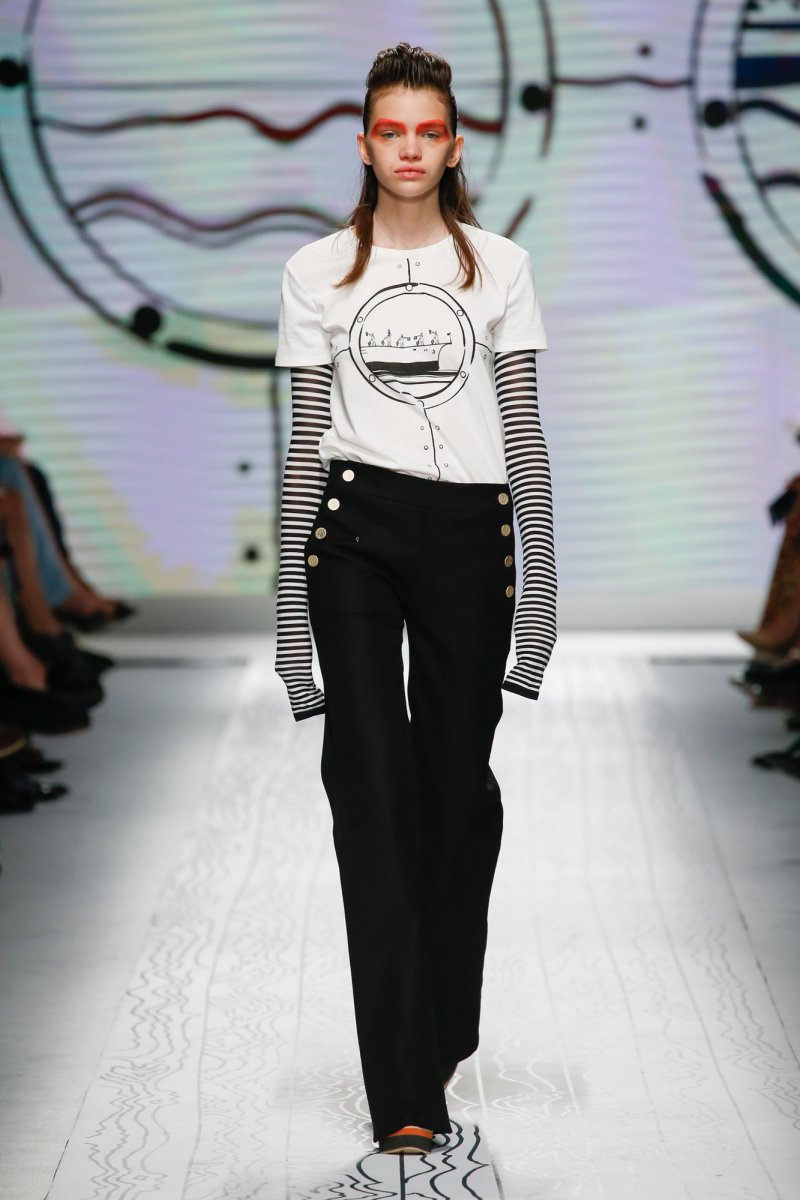 Picture marine inspired clothes merged with an irrevocable elegance. The result? A melting-pot of vibrant colors with symbols of stars and sailing knots in ode to the simple yet aesthetical art of timeless marine. Styles unfold into ankle length bias cut skirts, strings on light fabric, matelot pants, double-faced pea coats, buttons and marine stripes, drawing illusion into the unparalleled world of a mighty sailor. A palette of bold colors sways through the collection in the most artistic of ways, putting into sight hues of red, yellow, royal blue and sapphire.