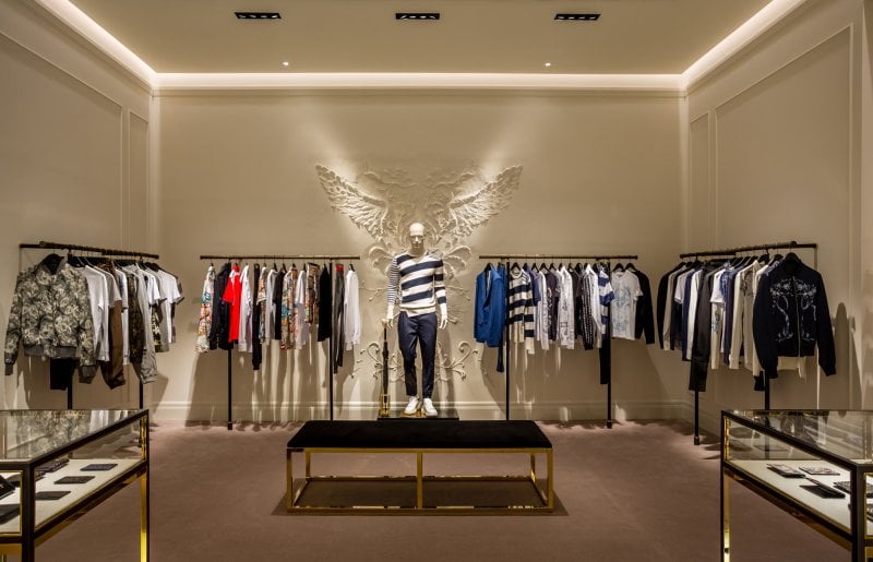 And this time, you can definitely judge a book by its cover, because of the luxurious black and bronze façade and the white Carrera marble frame. What you see is what you get! Simple yet sophisticated, the boutique features white lacquered shelving for an original display of accessories and a Nero Marquina marble floor upholstered with deep pile carpets. While you sift through McQueen’s eclectic collections, relish in the rich golden black and aged brass mirrors and display cabinets. Should you wish to rest, the store offers you marble and soft leather furnishings.