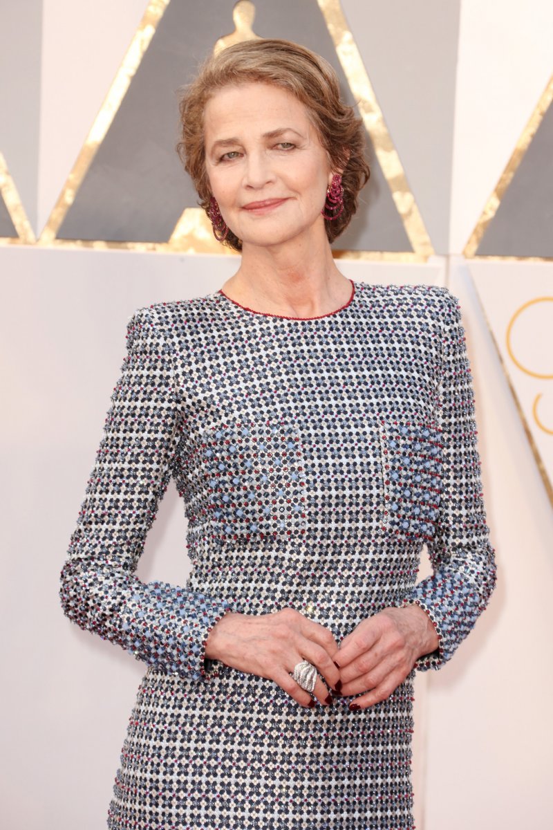 Charlotte Rampling added flair to her gown with De Grisogono earrings and ring