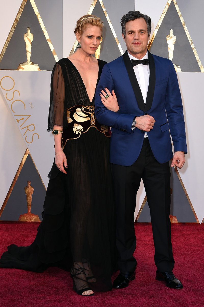 Sunrise Ruffalo was wearing a black Valentino Haute Couture gown with gold smears while her husband Mark Ruffalo was donning a Valentino custom-made tuxedo designed especially for him