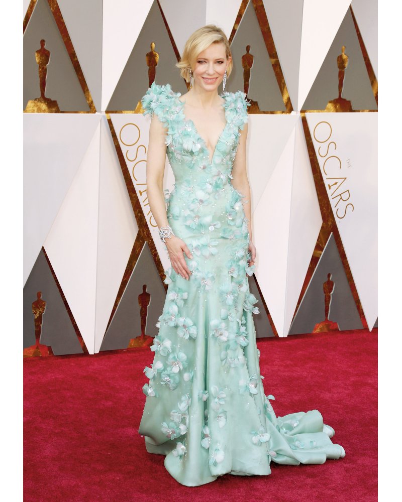 Cate Blanchett wore a baby blue sequin dress with Tiffany jewels