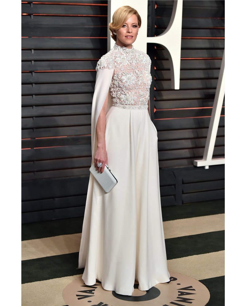 Elizabeth Banks complemented her white gown with some Tiffany jewels