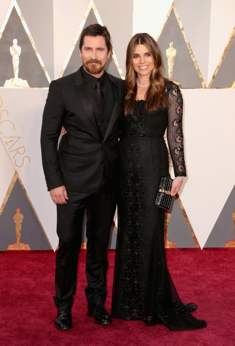 Christian Bale wearing Cartier’s new DRIVE watch and Sibi, his wife, completes her look with Cartier High Jewelry Diamond bracelet and Necklace at the Oscars 2016 awards ceremony