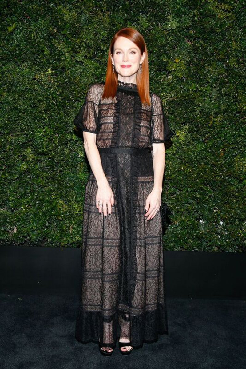 Julianne Moore was wearing a black lace Chanel Paris-Rome dress to the Pre-Oscars Dinner