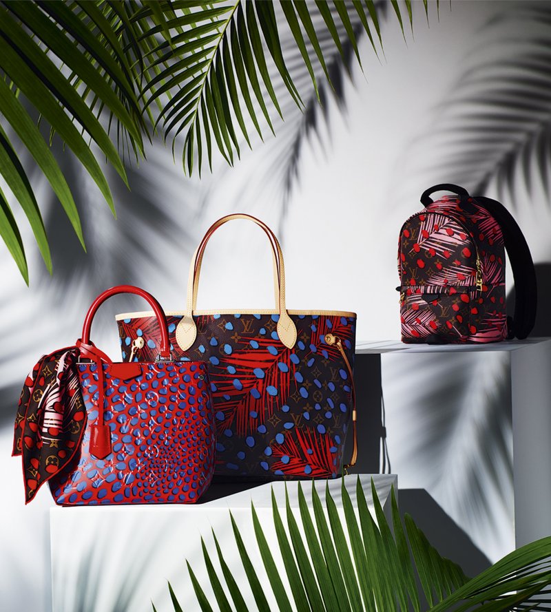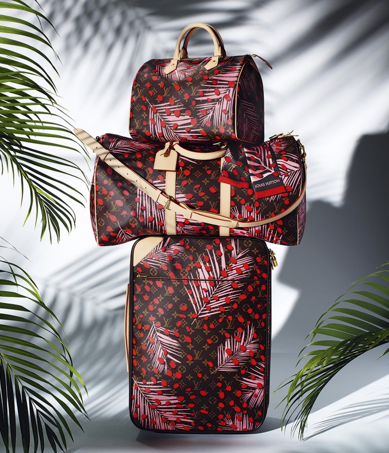 If you’re looking for the perfect companion for your summer getaway, then search no more ladies! Louis Vuitton is welcoming the new season with a “Tropical Journey” capsule collection featuring a handful of the symbolic Speedy and Neverfull bags, scarves, sunglasses and of course, shoes.