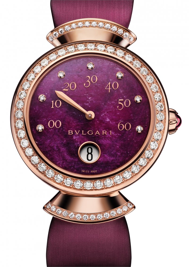 The new “Diva’s Dream” watches audaciously represent the modern-day Bulgari woman with a sophisticated dial. These complication timepieces speak, through Jumping Hours and Retrograde Minutes, a new language in feminine reading of time. Whether a lapis lazuli or a ruby finds its way to its heart, this timepiece remains a true representation of Bulgari’s time-old yet contemporary style.