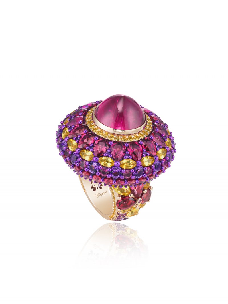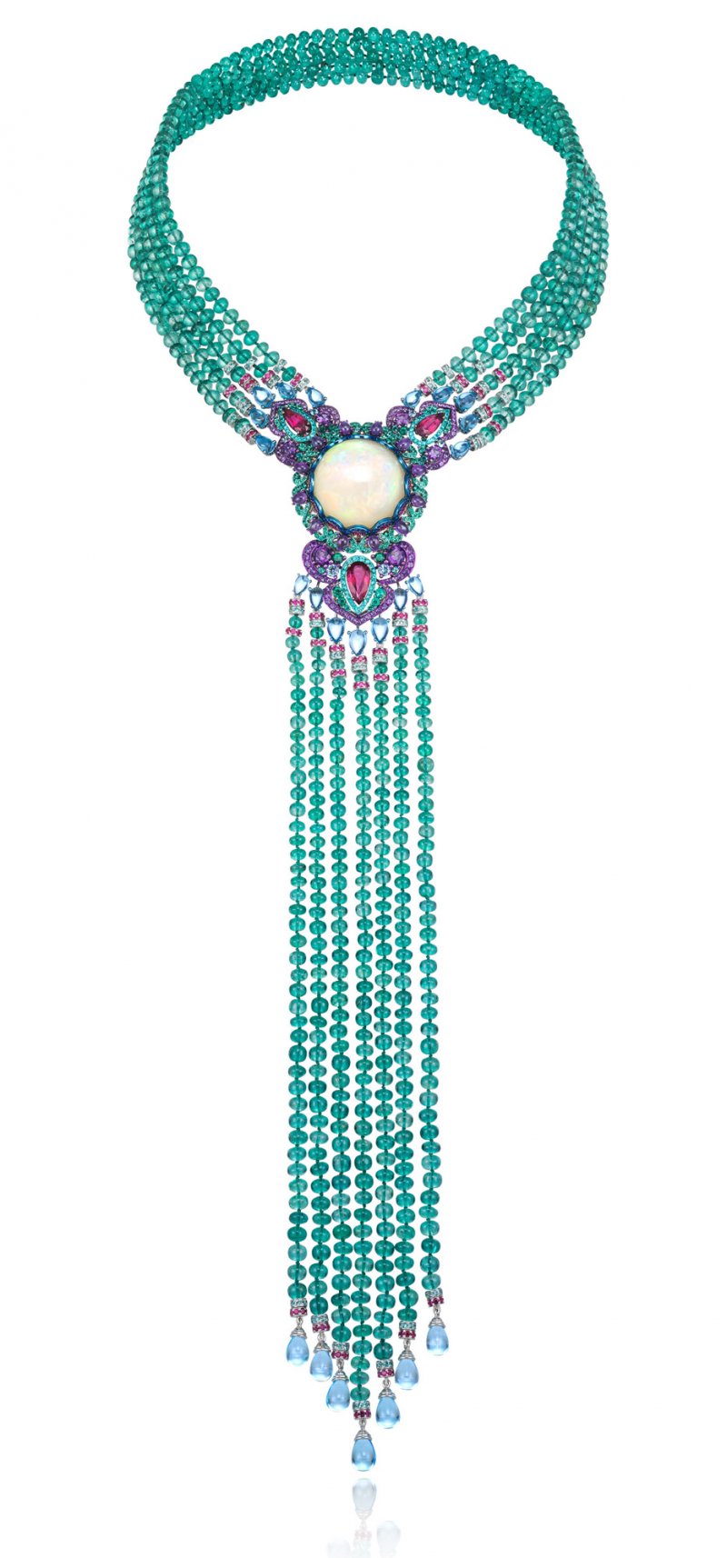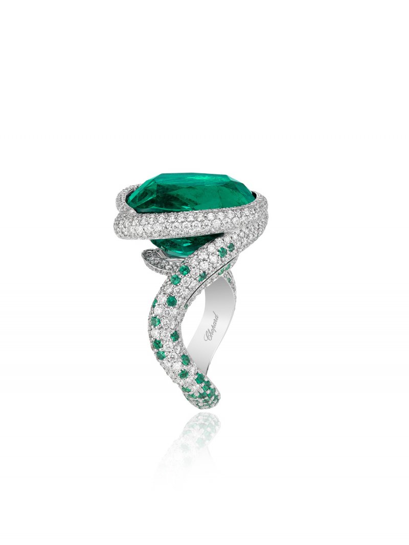 The 2016 Red Carpet collection pays tribute to women’s voluptuous charm through supple rounded shapes and focuses on necklaces that elegantly adorn their necks, as well as their matching earrings. Several creations feature titanium, an innovative material used for atypical shapes and can be colored with unexpected hues, while the Green Carpet creations are exclusively made of fairmined-certified gold and witness the first appearance of colored gemstones. Black opals, fire opals and sculpted jades join rubies, sapphires, diamonds and emerald to form an artwork that only a jewelry piece by Chopard can paint.