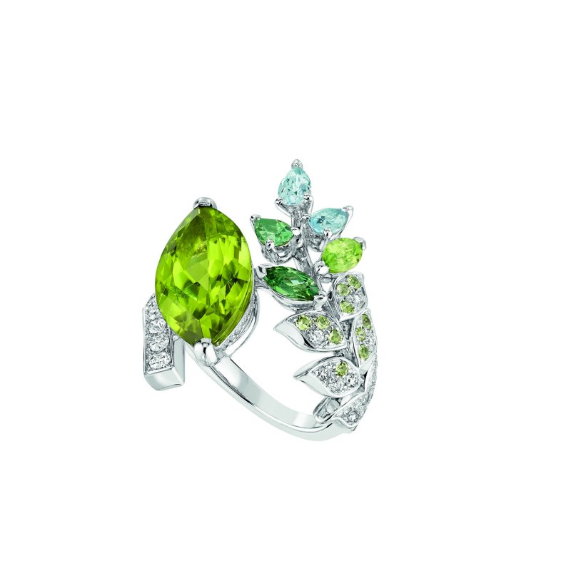 Brins de Printemps ring in 18-carat white gold, peridots, diamonds, aquamarines and green tourmalines