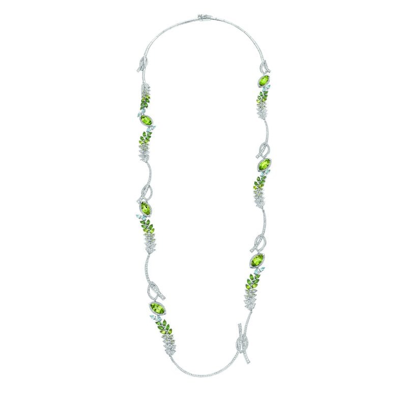 Brins de Printemps necklace in 18-carat white gold, peridots, diamonds, aquamarines and green tourmalines