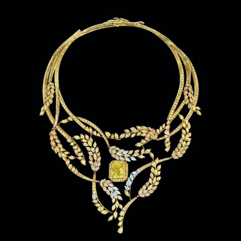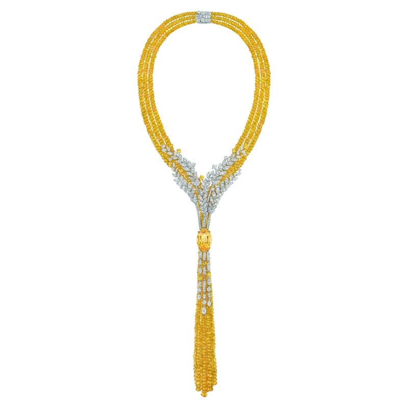 Fête des Moissons necklace in 18-carat white and yellow gold, set with yellow, multicolored and white diamonds
