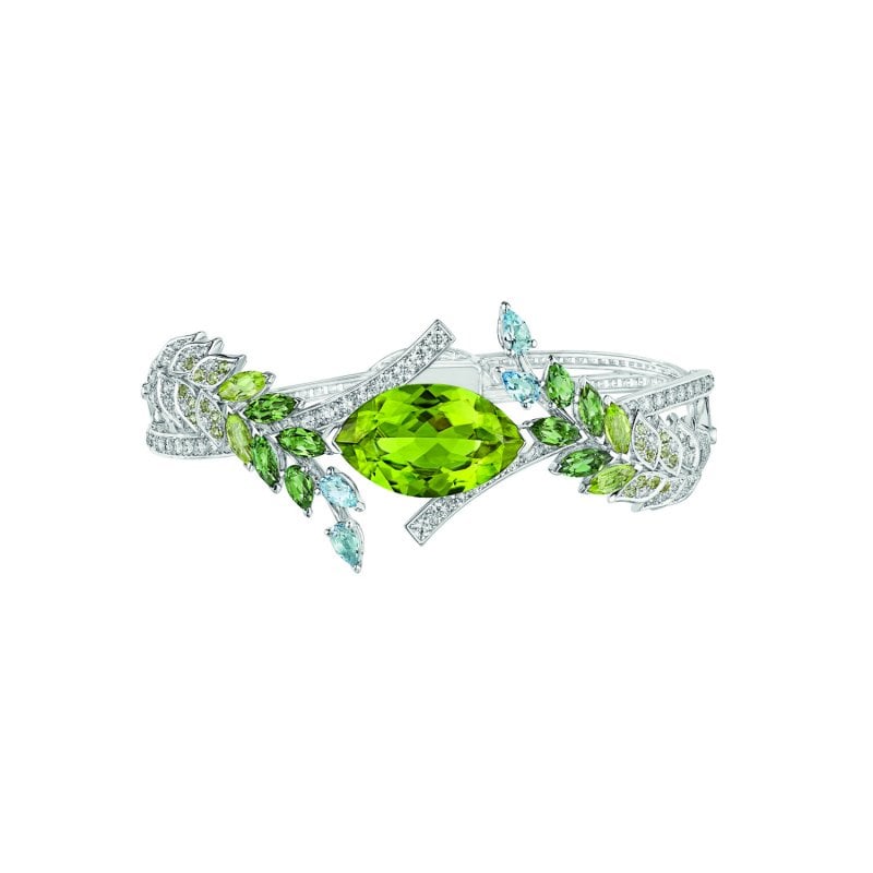 Brins de Printemps bracelet in 18-carat white gold, peridots, diamonds, aquamarines and green tourmalines