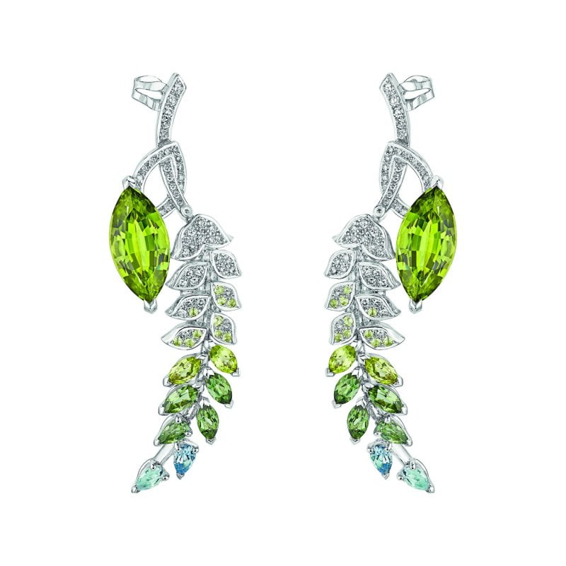 Brins de Printemps earrings in 18-carat white gold, peridots, diamonds, aquamarines and green tourmalines