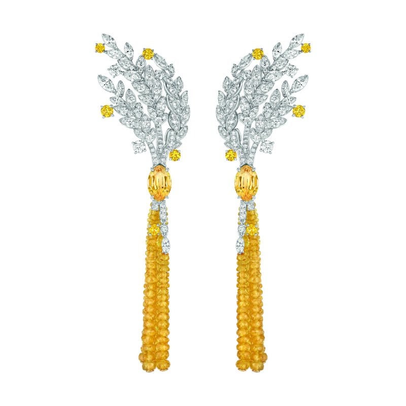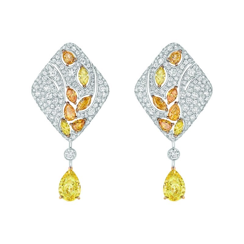 Fête des Moissons earrings in 18-carat white and yellow gold, set with yellow, multicolored and white diamonds