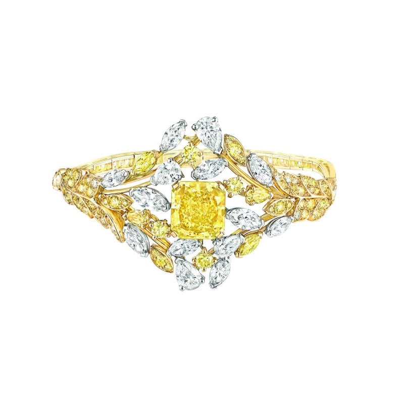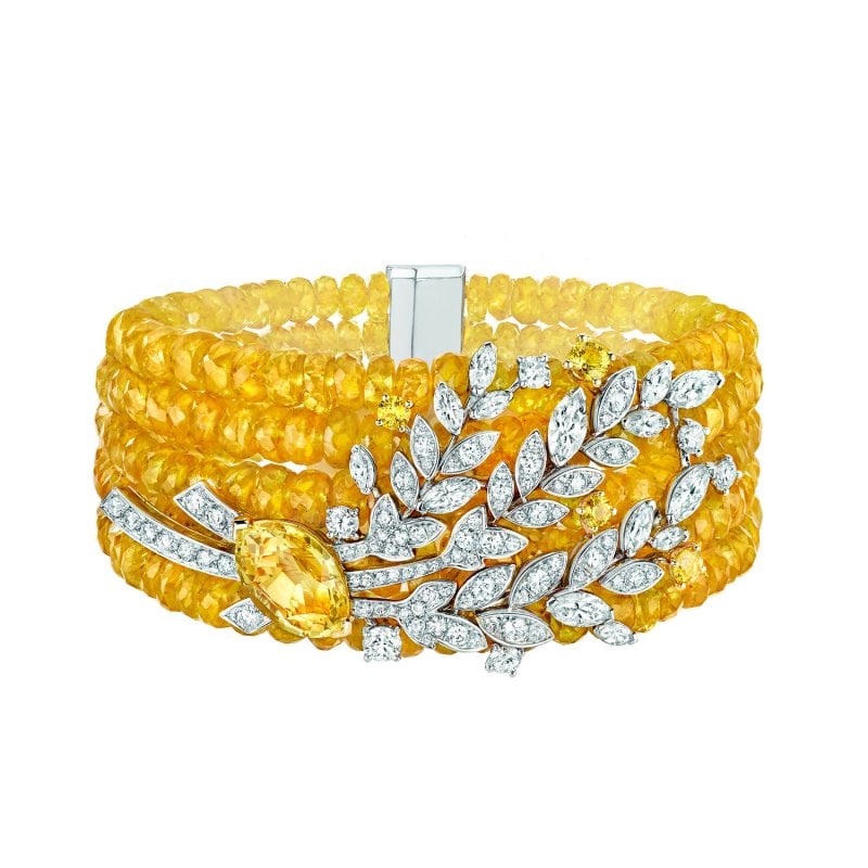 Fête des Moissons bracelet in 18-carat white and yellow gold, set with yellow, multicolored and white diamonds