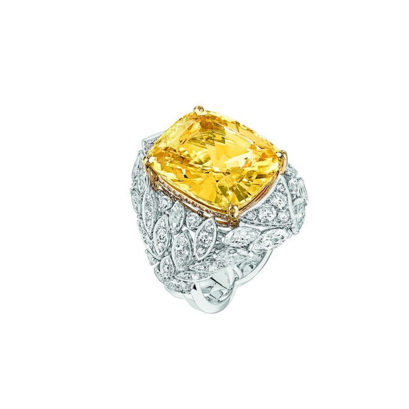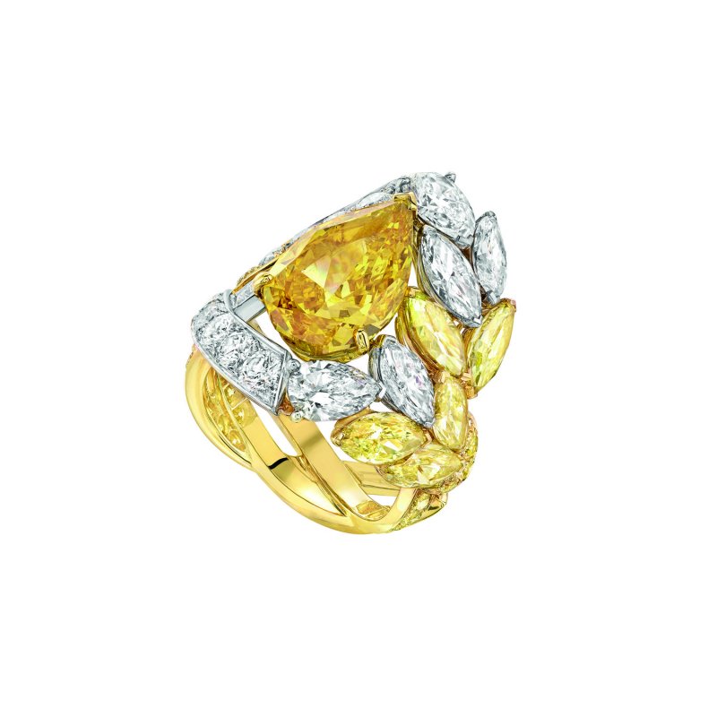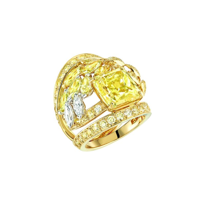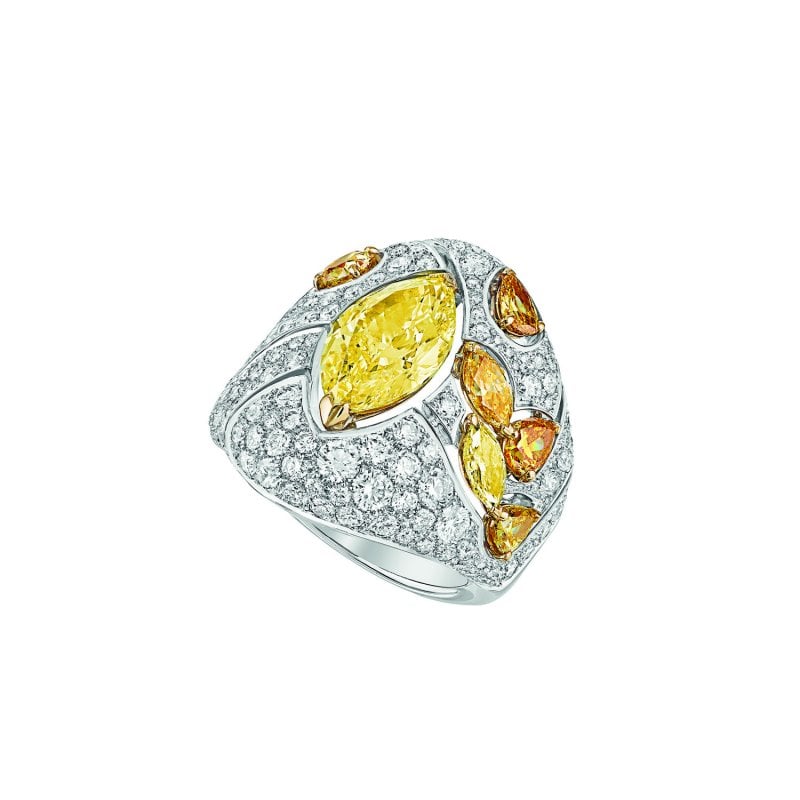 Fête des Moissons ring in 18-carat white and yellow gold, set with yellow, multicolored and white diamonds