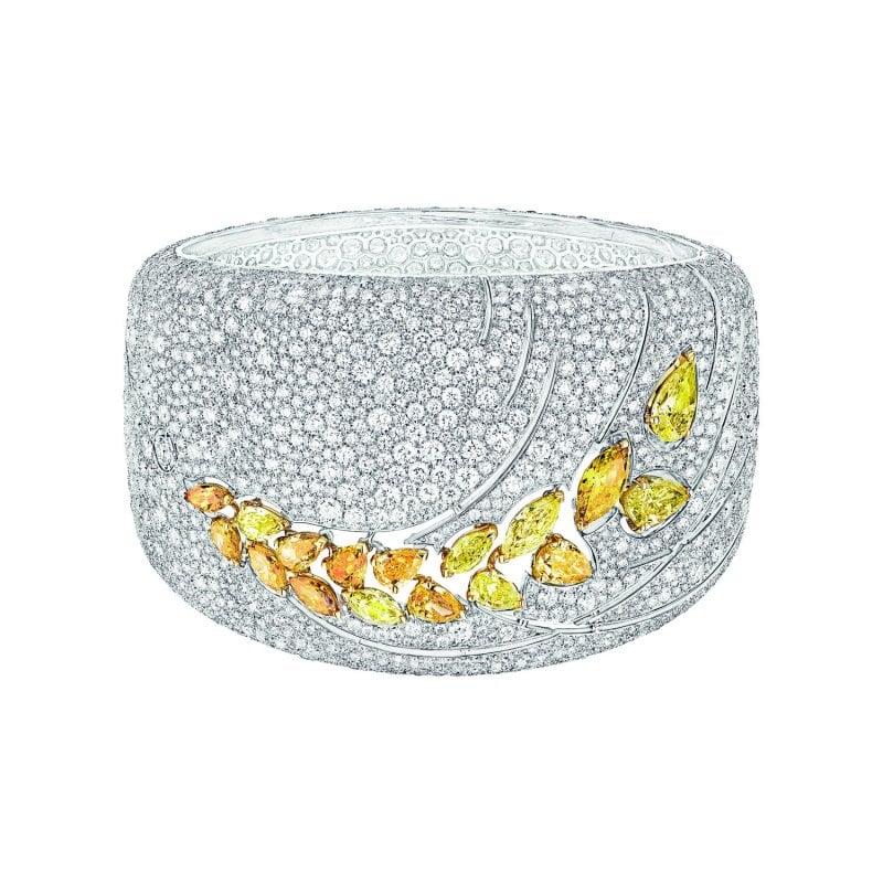 Impression de Blé bracelet in 18-carat white and yellow gold, set with yellow, multicolored and white diamonds