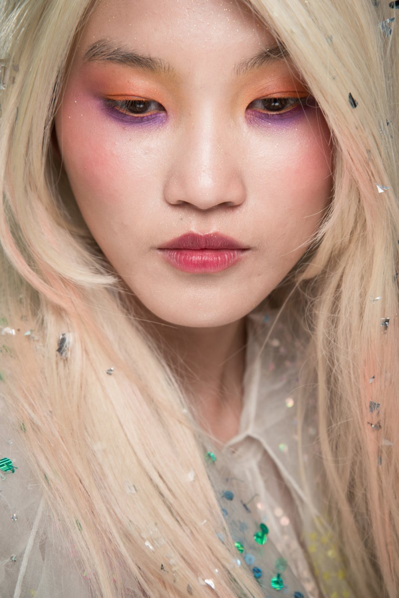 Get the look by using M.A.C’s Technakol Liners in Sourpuss, Purple Dash, Funfare and Skyscape, along with M.A.C Pigments in Red Electric, Neo-Orange, Primary Yellow, Hi-Def Cyan and Green Space, Glitters in Silver, 3D Silver, 3D Black, 3D Violet, Reflects Bronze, Reflects Very Pink, and Reflects Copper.