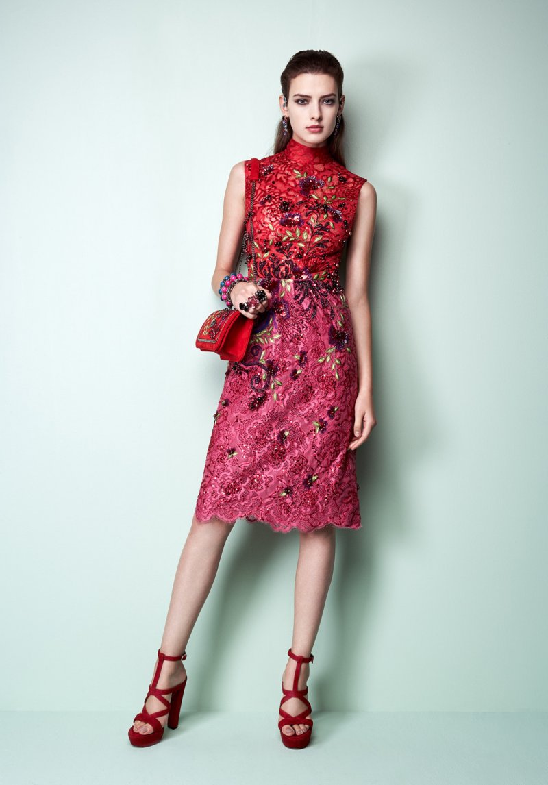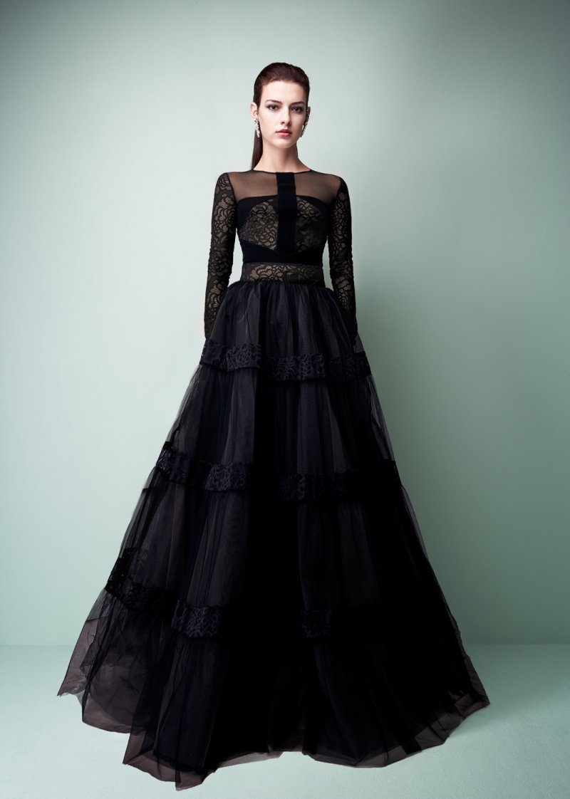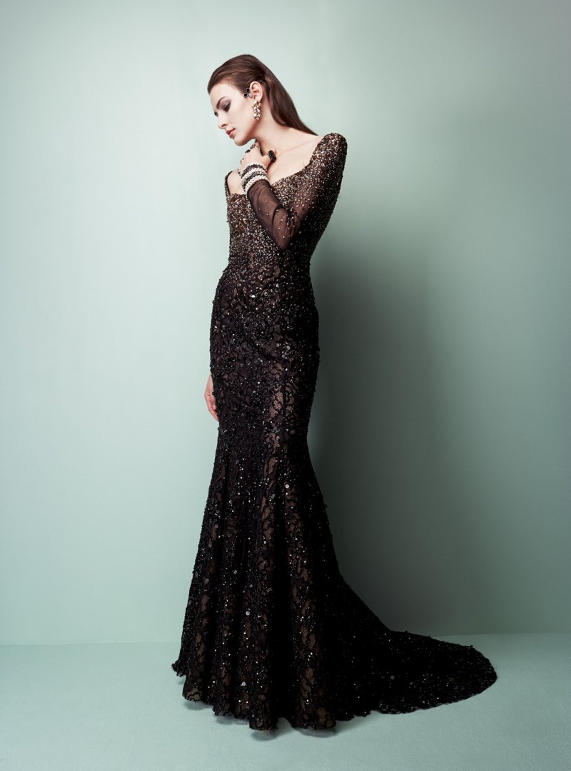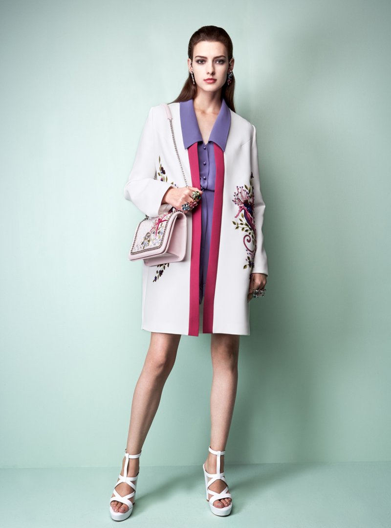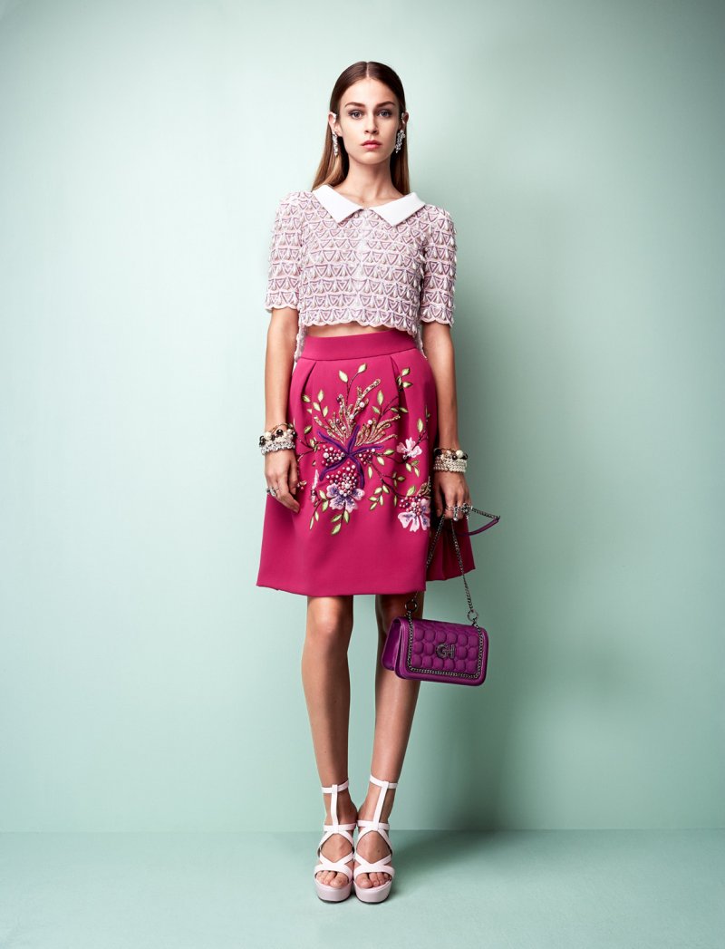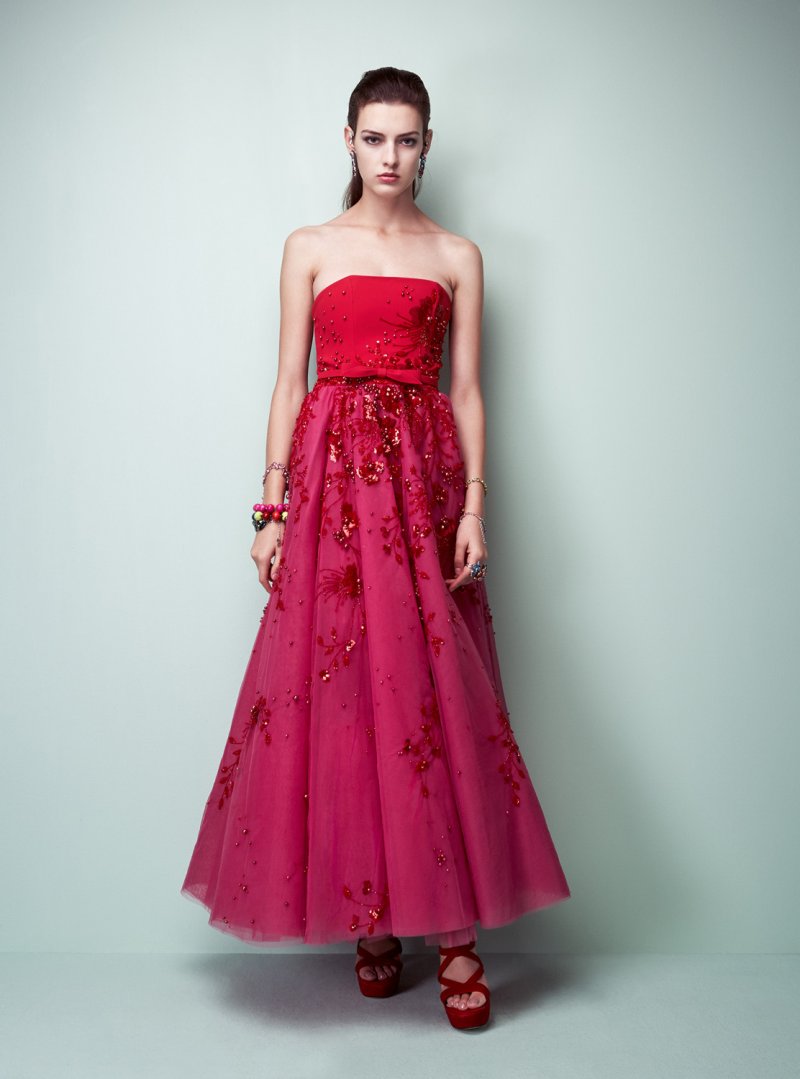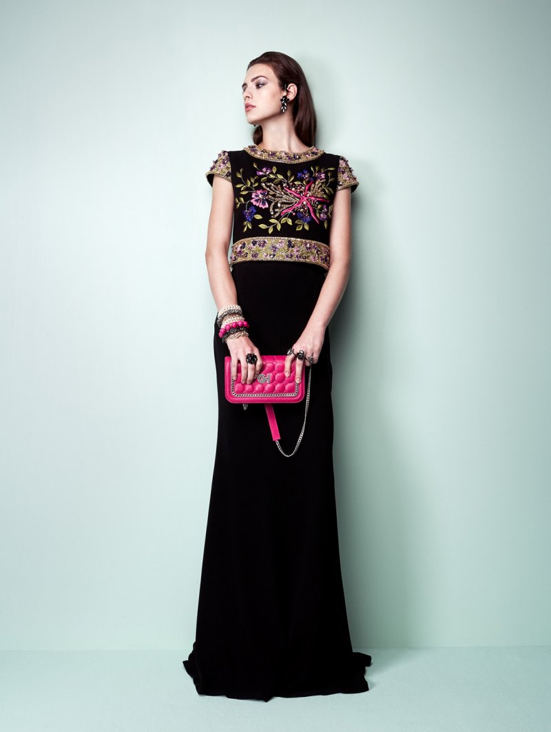 The line-up of dresses and tunics seem to be alluding to the mesmerizing movement of the ocean and its waves, hence painting a canvas full of the joys of lace adding, reminiscent motifs and dynamic lines. Flowing dresses with majestic bustiers have been a Hobeika specialty forever, but this time, the raw magnetism was enhanced through a cape-shouldered tunic, a high-slit gown featuring a sequined leg, evasé dresses with bowed belts at the waist, lightweight coats on tunics, chiffon fabrics and a whole lot of ocean-bound crafts. The color palette recalls the tones of the fauna and flora of the aquatic world, as colors skew from turquoise, emerald green, pink and orange. The cascade of embroideries, crystals and pearls melt away in the designs, proving yet again the designer’s ardor for the ocean.