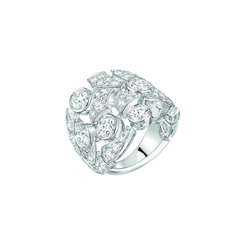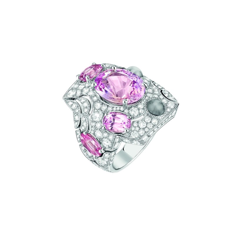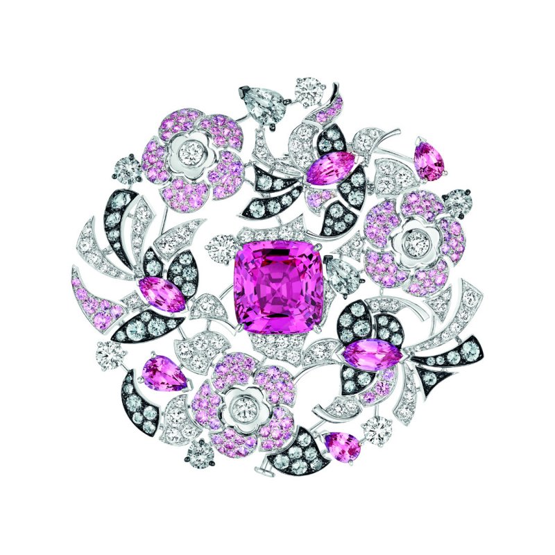 Jeanne brooch in white gold, pink spinels, pink sapphires and grey spinels