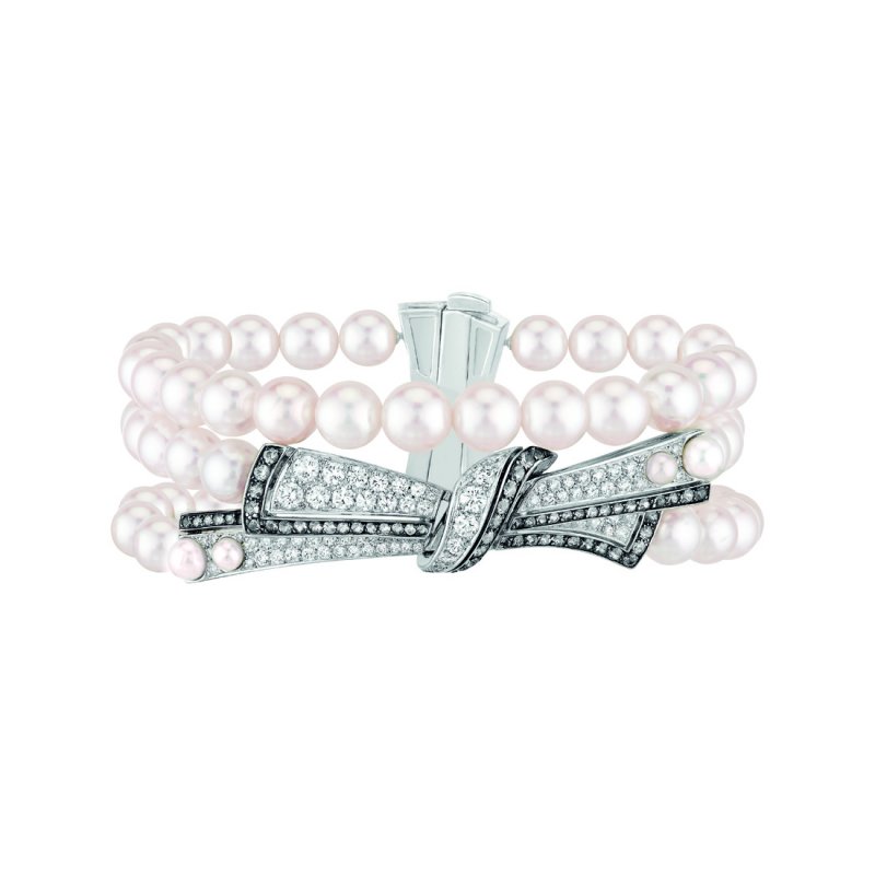 Marthe bracelet in white gold, Japanese cultured pearls, grey spinels and diamonds