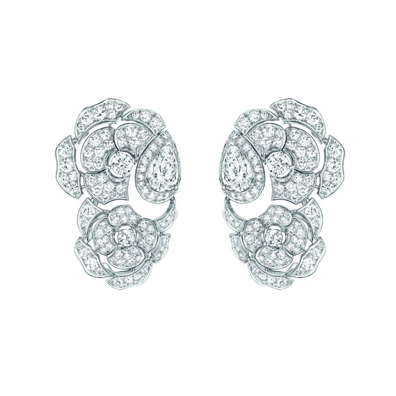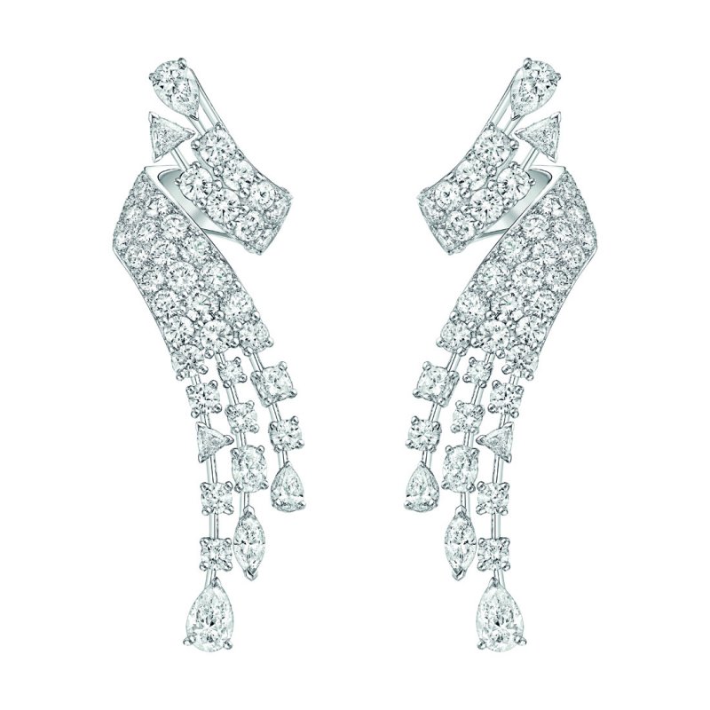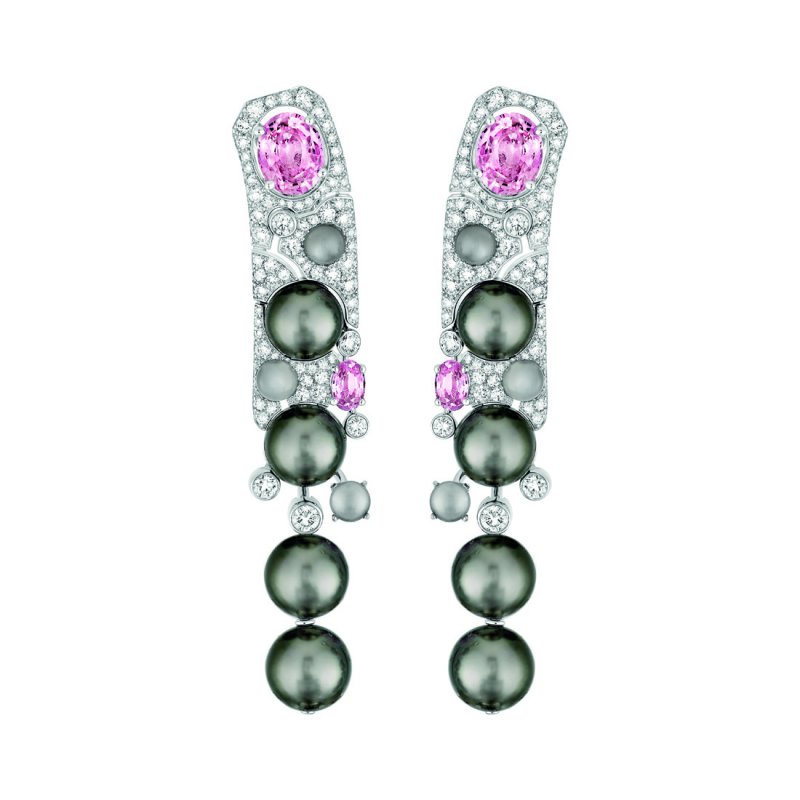 Suzanne earrings in white gold, pink sapphires, Tahitian cultured pearls, moonstones and diamonds