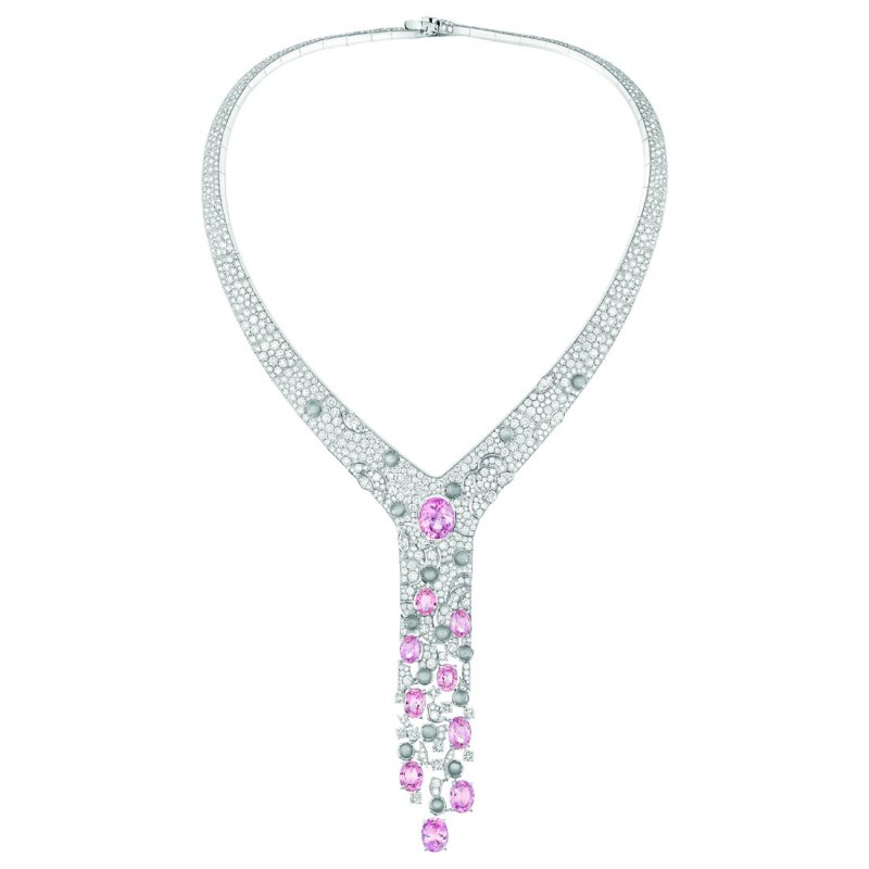 Jeanne necklace in white gold, pink sapphires, diamonds and grey spinels