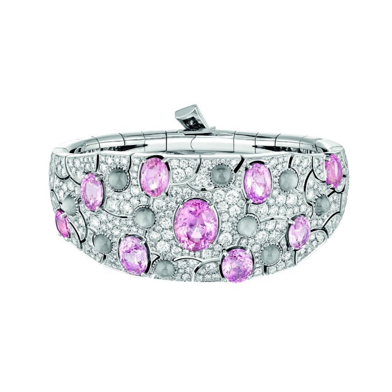 Suzanne bracelet in white gold, Padparadscha sapphires, moonstones and diamonds