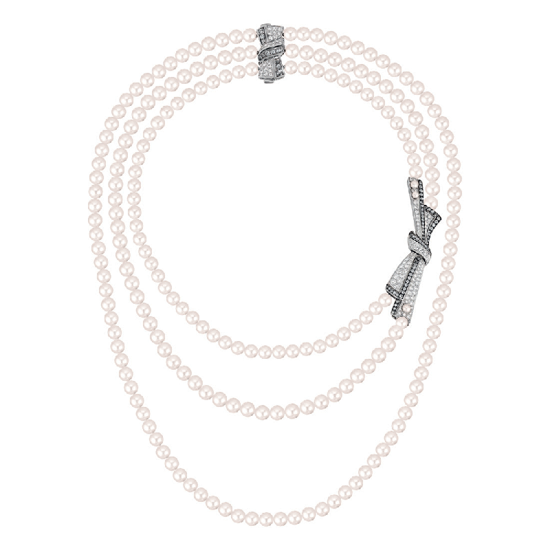 Emilienne necklace in white gold, diamonds, freshwater cultured pearls and Tahitian cultured pearls