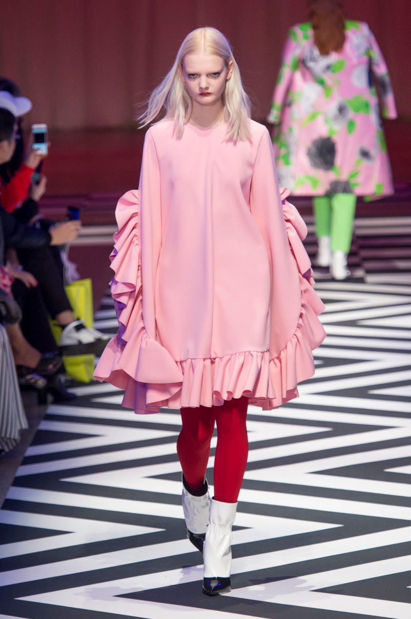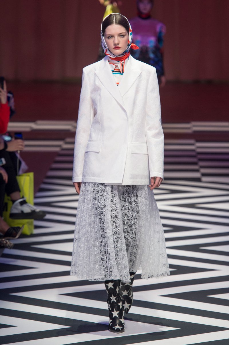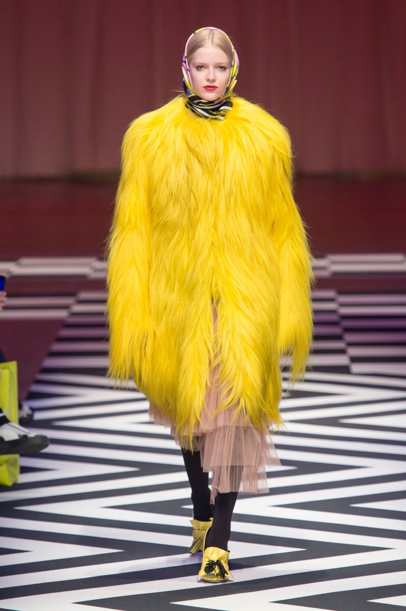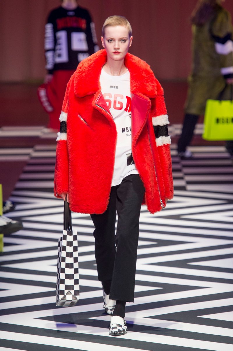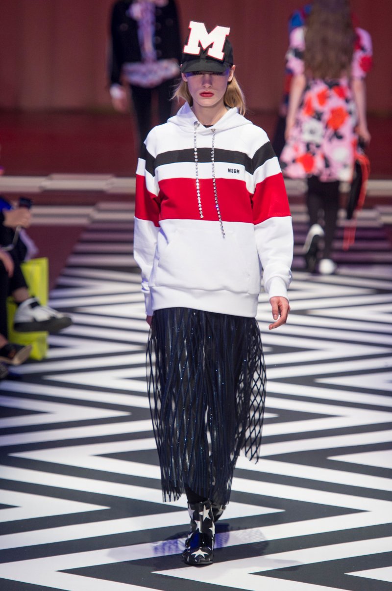 Massimo Giorgetti’s eponymous line, MSGM, might as well be decoded as his will to translate his thoughts into designs. The designer, who is now also at the head of Emilio Pucci’s team, dresses the real deal, ergo the fashion maven. His collection was synonymous with fun and energetic, bringing forth a series of plissé tulle skirts and V-fringe cheerleader knits. The effect was a charming take on American iconography, showcasing Giorgetti’s wonderful hand with twists and tournures.