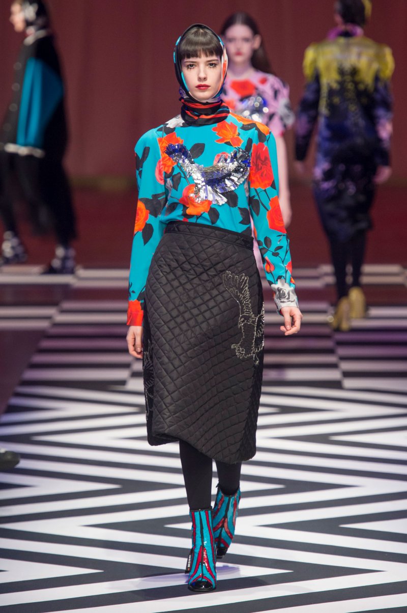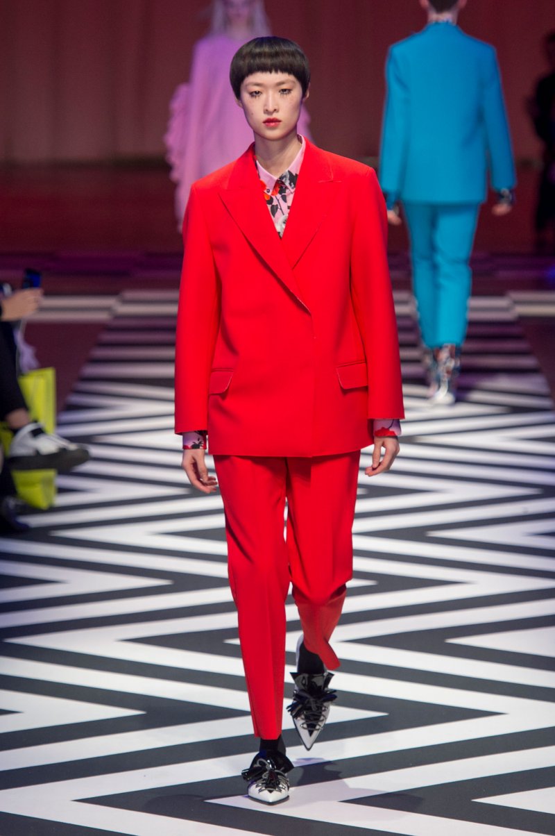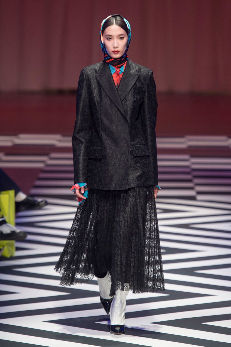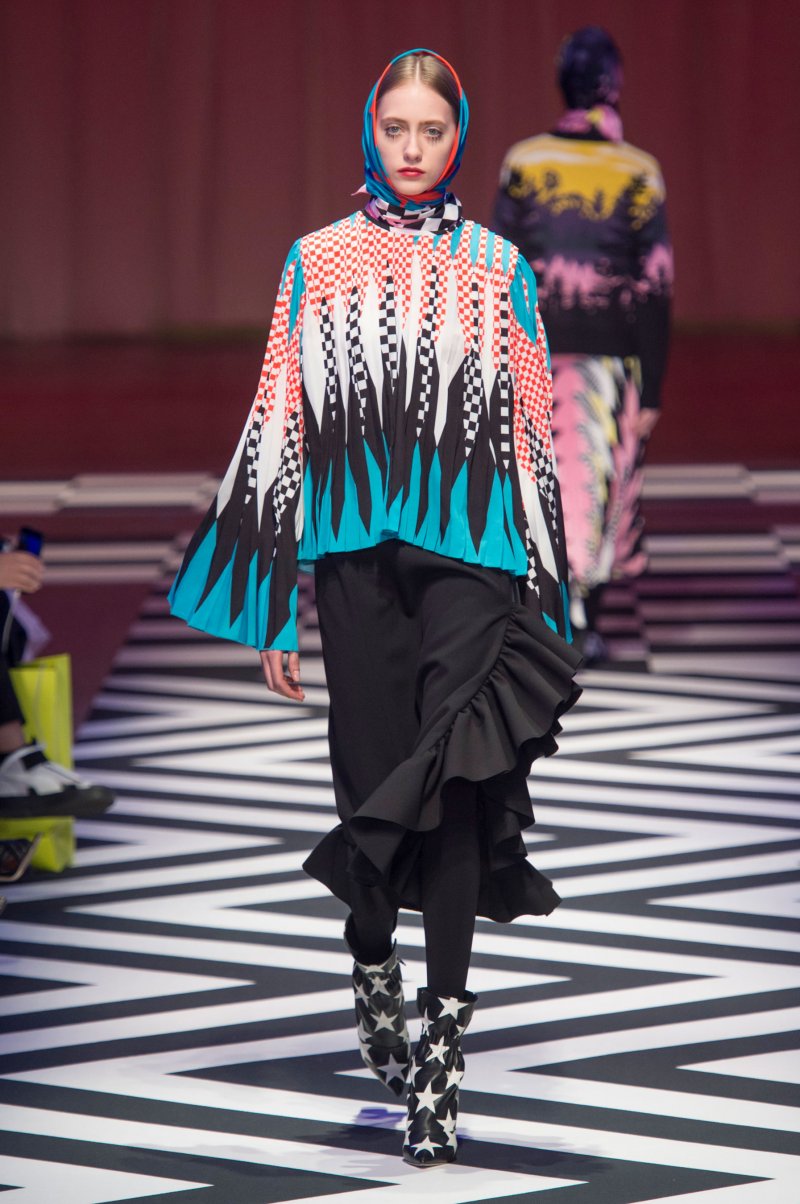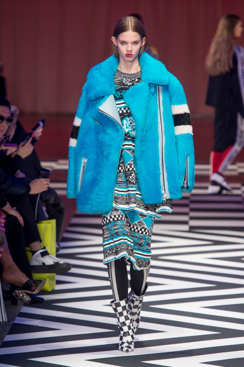 Massimo Giorgetti’s eponymous line, MSGM, might as well be decoded as his will to translate his thoughts into designs. The designer, who is now also at the head of Emilio Pucci’s team, dresses the real deal, ergo the fashion maven. His collection was synonymous with fun and energetic, bringing forth a series of plissé tulle skirts and V-fringe cheerleader knits. The effect was a charming take on American iconography, showcasing Giorgetti’s wonderful hand with twists and tournures.