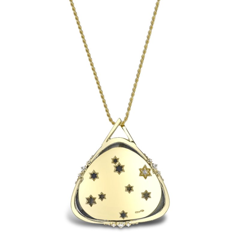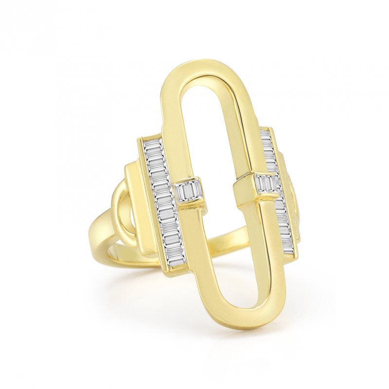 Clean and simple shapes are easy to wear with any look, observes Deborah Pagani, New York-based fine jewelry designer. “The Open Pill Ring is comfortable and sleek, and it’s streamline design takes on another version of my classic pill. The addition of baguettes adds the perfect amount of sparkle for the workplace. The ring fits closely to the finger, and will not distract from typing emails or meeting with clients. The Pill Pendant is the most versatile and is able to change into a choker for a completely different look. Whether it’s beautifully framed with a classic Saint Laurent blazer, your favorite t-shirt, or a basic knit you do not have to worry about clashing colors and styles,” says Deborah.