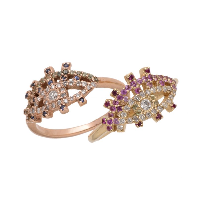If you’d like to move beyond the very simplistic round studs and tennis bracelet styles, we could suggest some lovely designs that would work well from 9-5 and beyond. Whether you want to dress up your wrist while wearing a sleeveless dress or cap sleeves, or pretty earrings or statement cuffs for dinner after work, we have shortlisted options that range from slim bangles with gemstone accents that you can stack up, should you wish, pinky rings, pendants and slender bracelets with small motifs.