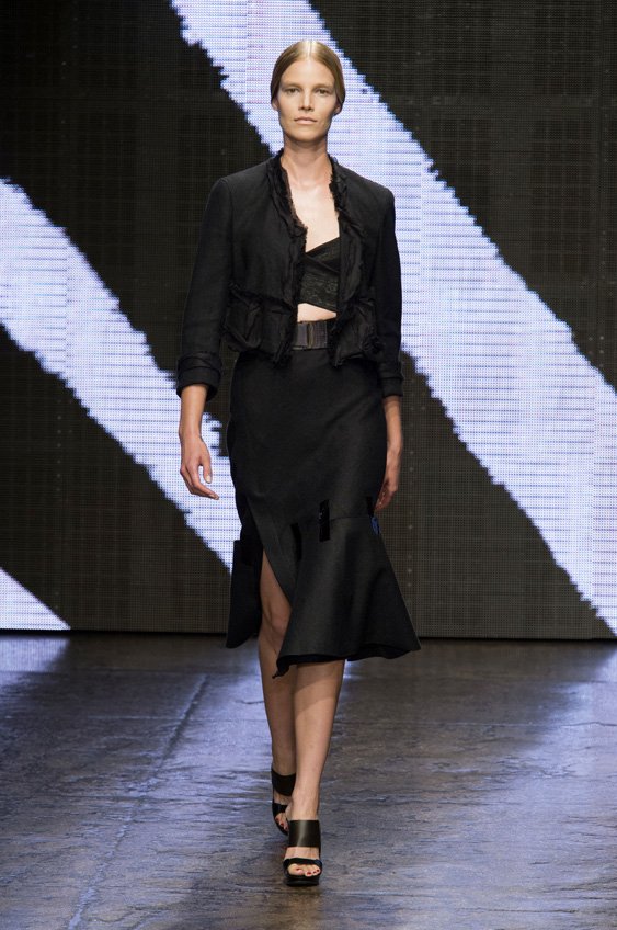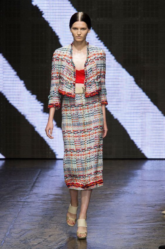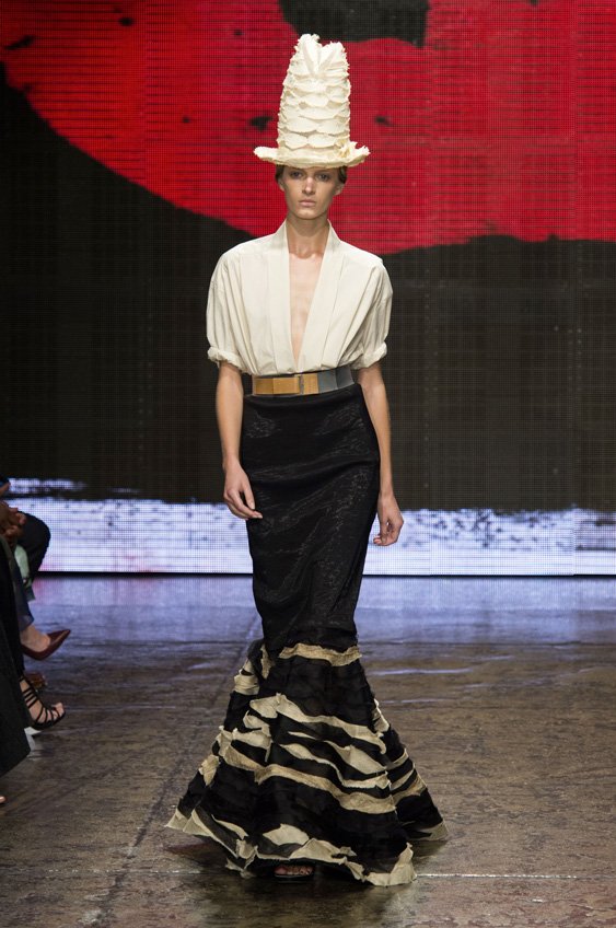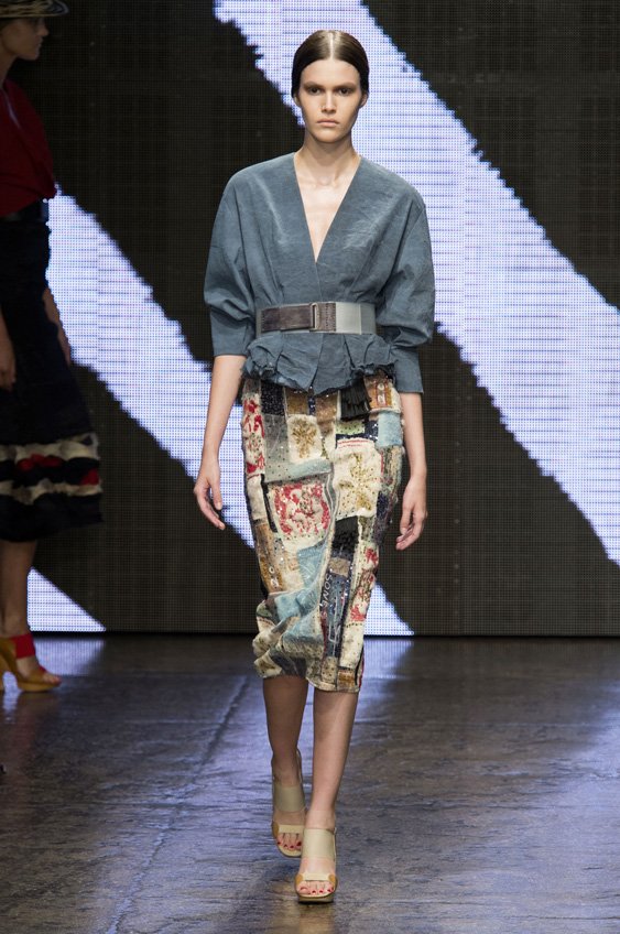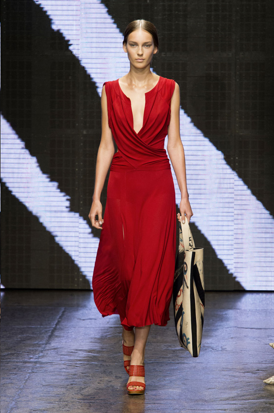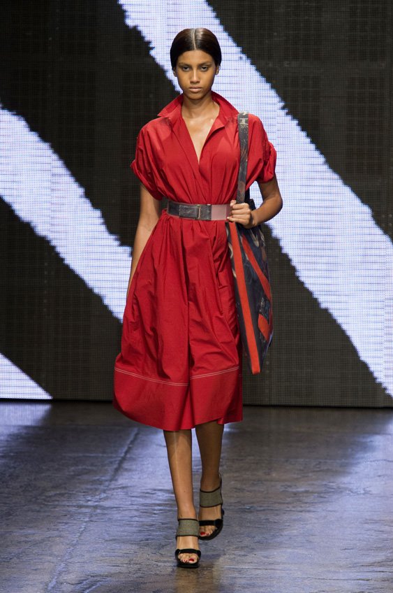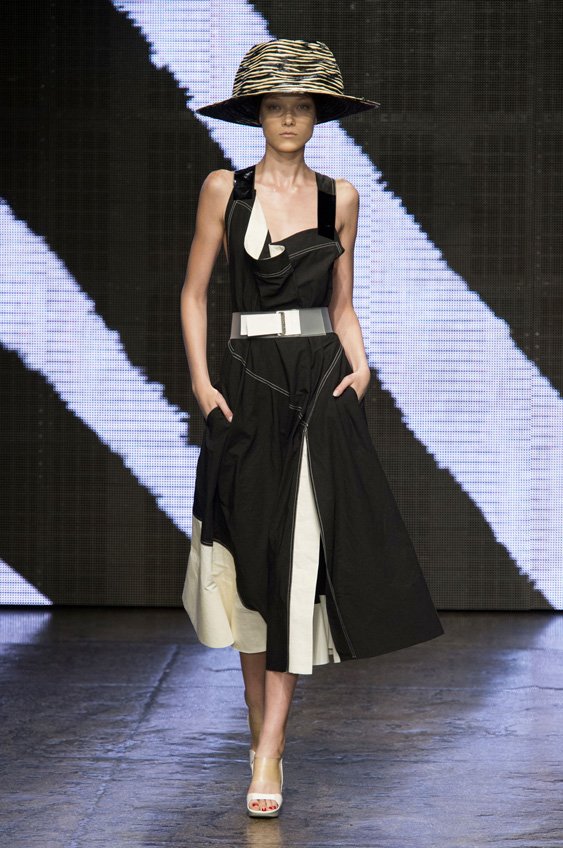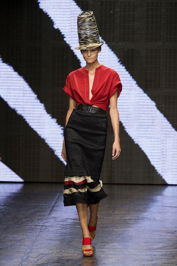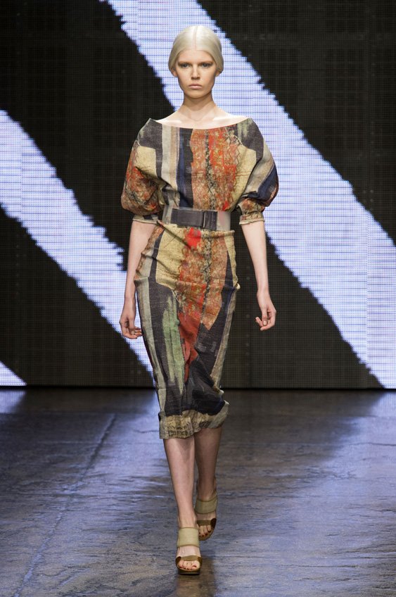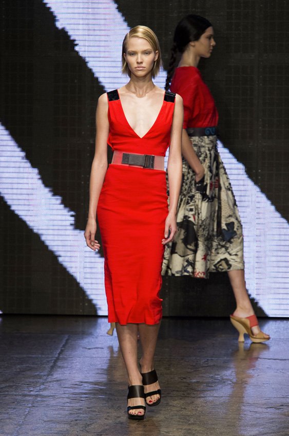 Abstract graffiti, brush strokes and paint splashes were the basis for the collection’s prints and patterns; while bra tops, cropped jackets, pencil and full skirts brought out the 50s silhouettes. It was this marriage of two opposing sensibilities—urban social expression and 1950s conservatism—that created such a fresh and vibrant collection.