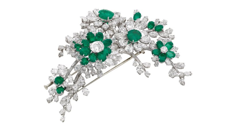 Elizabeth Taylor has been known for wearing her jewelry in her own way and the proof is that she wore this Bulgari brooch set with emeralds and diamonds as a hair accessory in 1963’s “The V.I.P.S”.