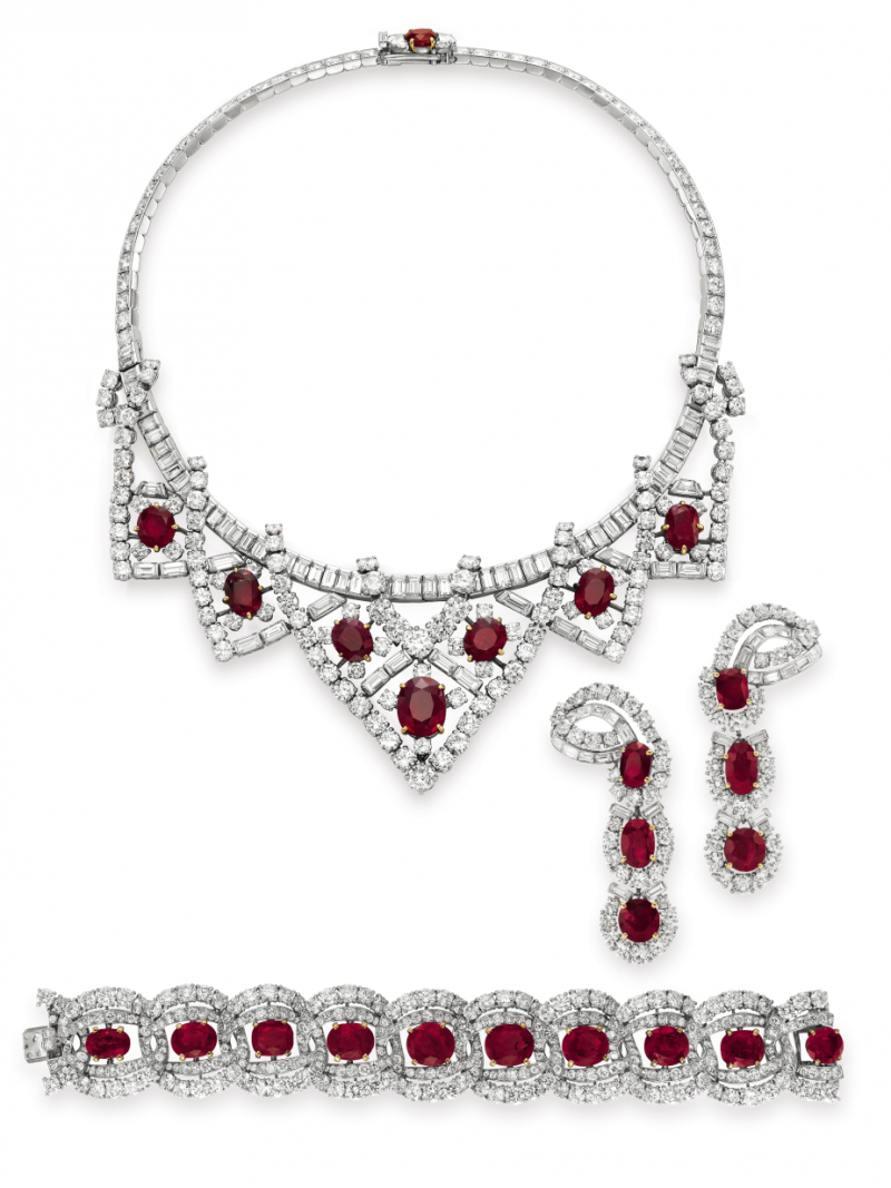 This diamond and ruby set by Cartier was a gift from Taylor’s third husband producer Mike Todd. Elizabeth happened to be swimming in the pool when he joined her in the pool with these precious jewels in hand. Did you say fairytale?