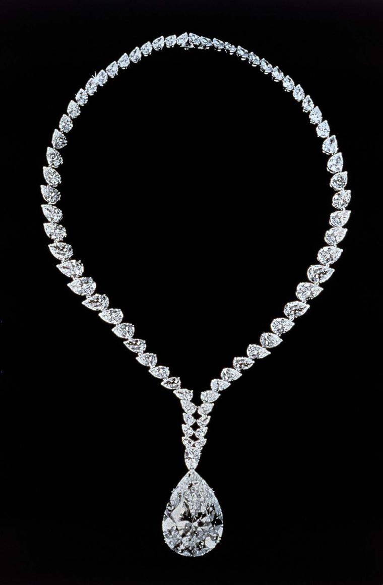 The Taylor-Burton diamond is a 69.42-carat pear-shaped one that Burton purchased at an auction. It was originally set in a ring but because it was too big, they had Cartier design a necklace for it.