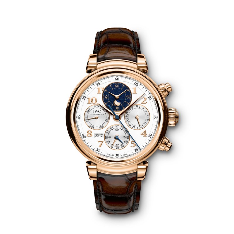 In addition, IWC has two high horology timepieces to present: the Da Vinci Tourbillon Rétrograde Chronograph – featuring an unusual combination of a classic tourbillon, a retrograde date and a sporty chronograph on a single dial, and the Da Vinci Perpetual Calendar Chronograph, which is the first IWC watch to combine the mechanical chronograph with a perpetual moon phase display in a new complication module.