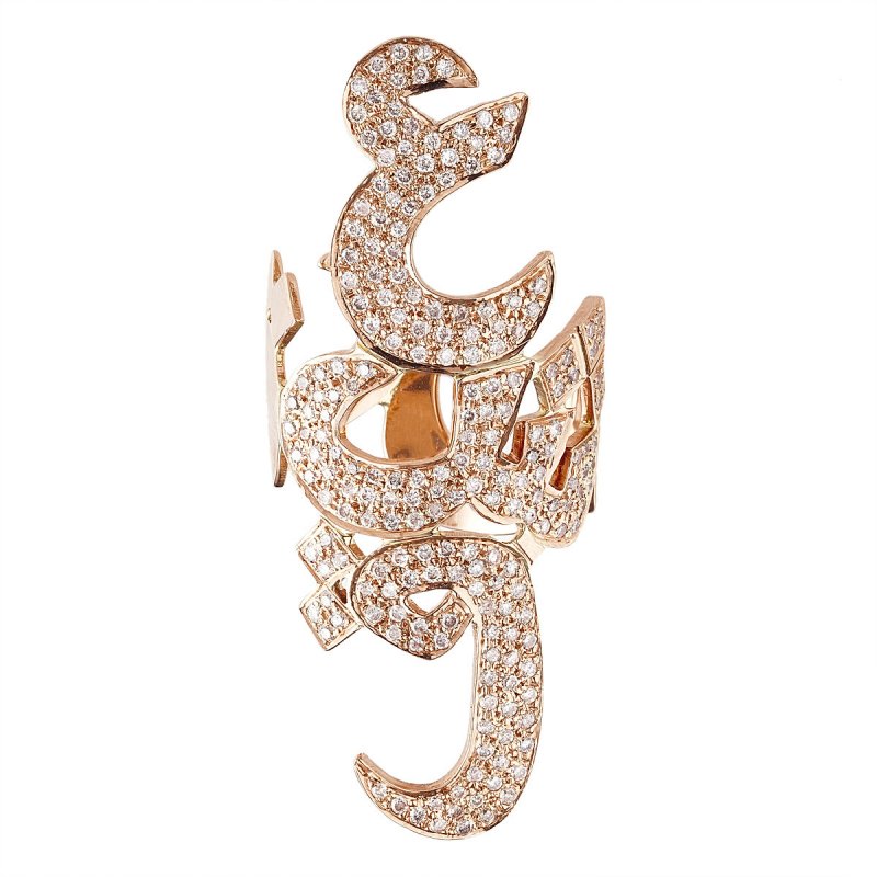 Arabic Calligraphy is an art, as it reflects a certain kind of poetry, elegance and romanticism through every written or engraved word. With poetry lying at the heart of our culture, the beauty and power of Arabic words are definitely something to be acknowledged. With this in mind, we would like to highlight a few jewelry designers that draw inspiration from this art.
