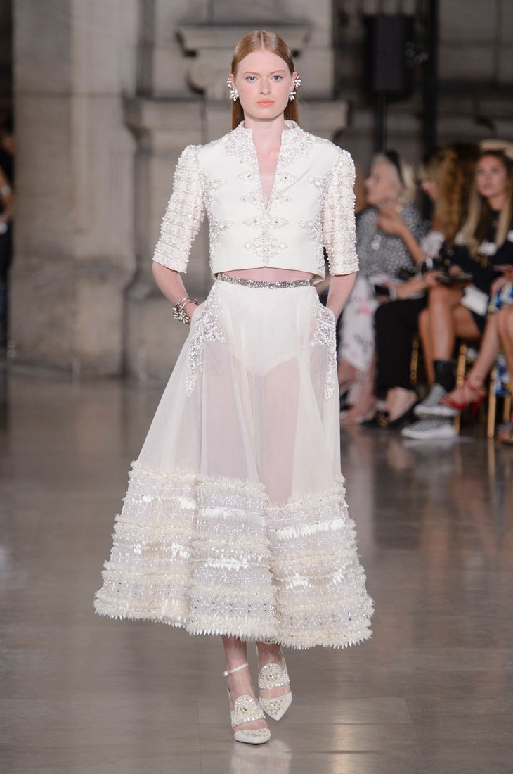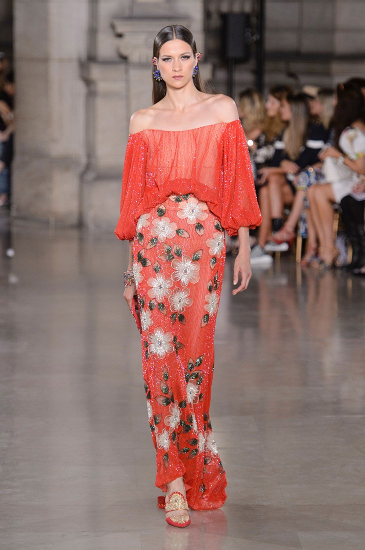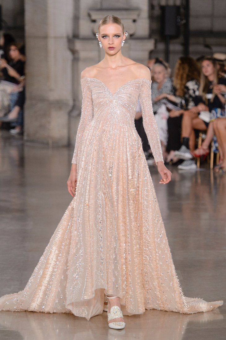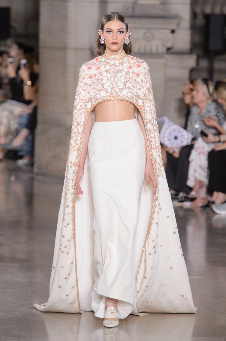 There were cut-out capes beautifully paired with floor-grazing skirts, while other designs revealed dark fringes and 3D embroideries. The crystal embroidered sheer dresses could have been mistaken for a second skin, grazing the models ever so elegantly and making for a wondrous line. But perhaps the most striking design was the champagne-colored Bardot gown, glowing with the prowess of a fairytale princess. Safe to say, the collection was synonymous with gloriousness, ending with a marvelous bridal gown finale which was intricately embellished with 3D flowers.