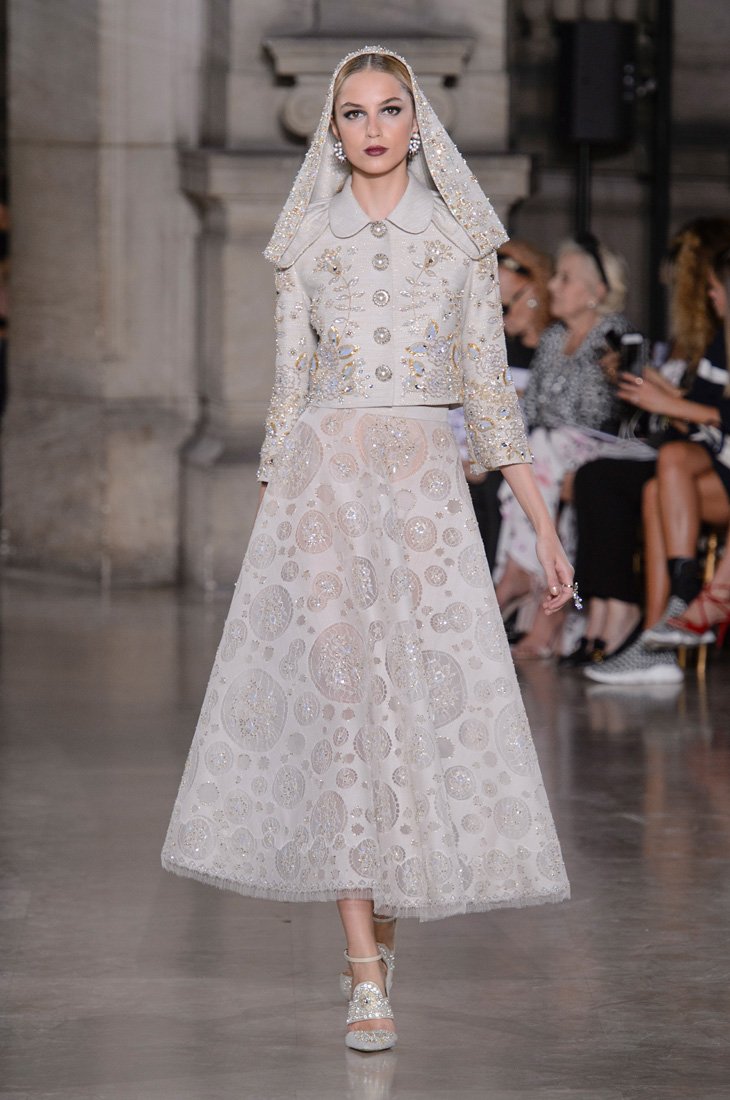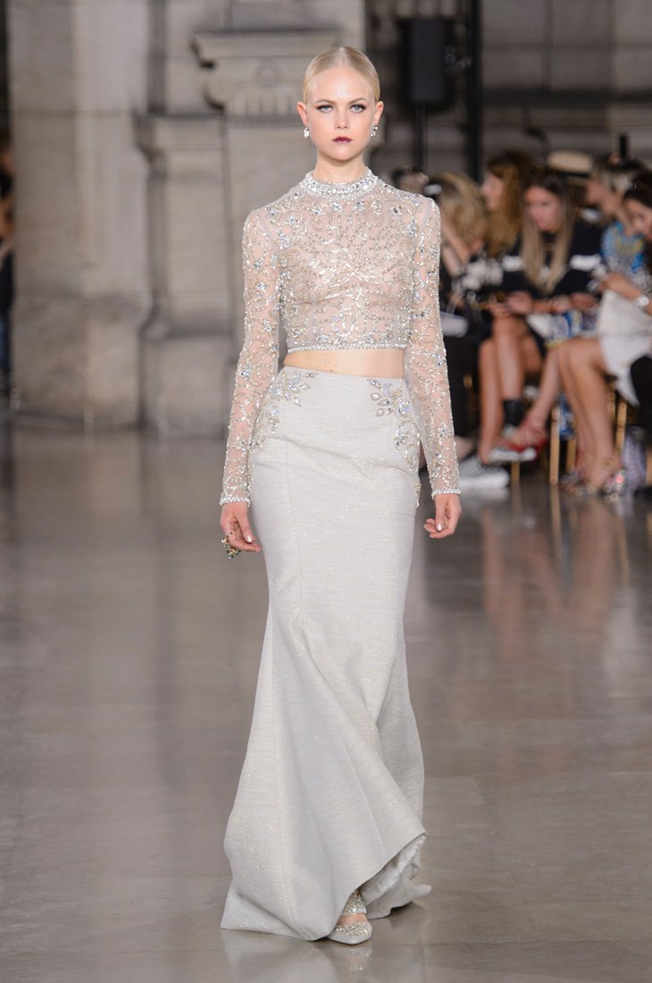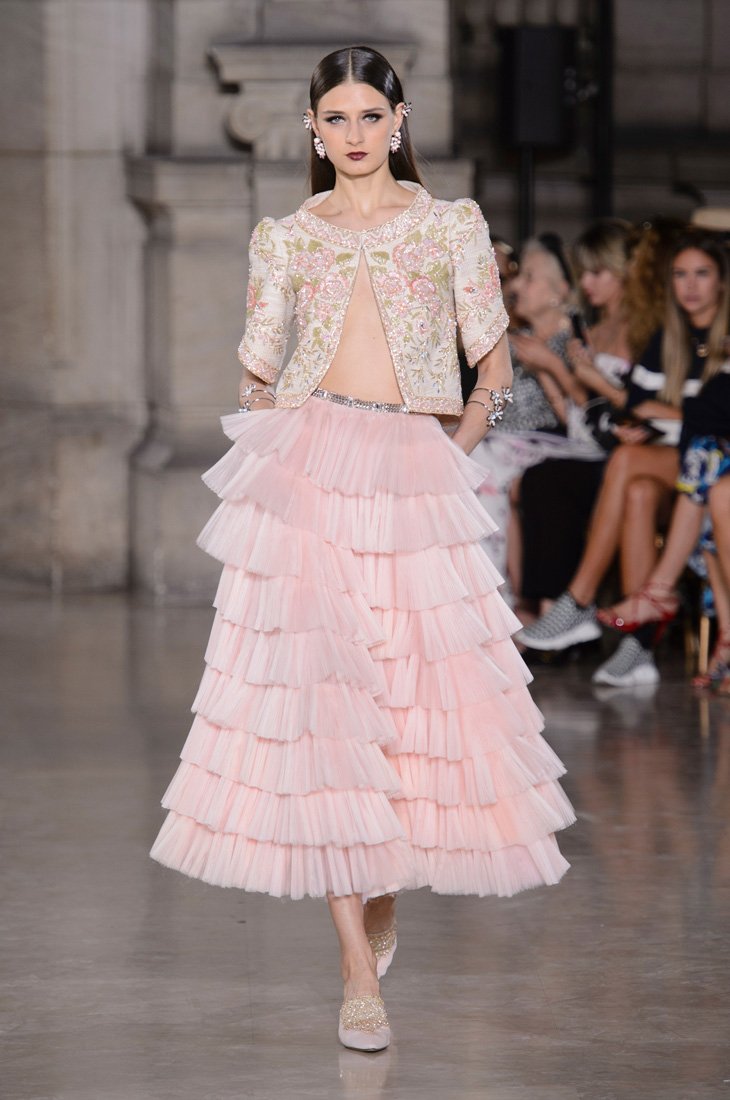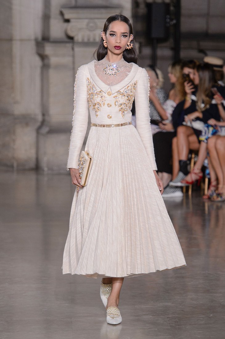 There were cut-out capes beautifully paired with floor-grazing skirts, while other designs revealed dark fringes and 3D embroideries. The crystal embroidered sheer dresses could have been mistaken for a second skin, grazing the models ever so elegantly and making for a wondrous line. But perhaps the most striking design was the champagne-colored Bardot gown, glowing with the prowess of a fairytale princess. Safe to say, the collection was synonymous with gloriousness, ending with a marvelous bridal gown finale which was intricately embellished with 3D flowers.