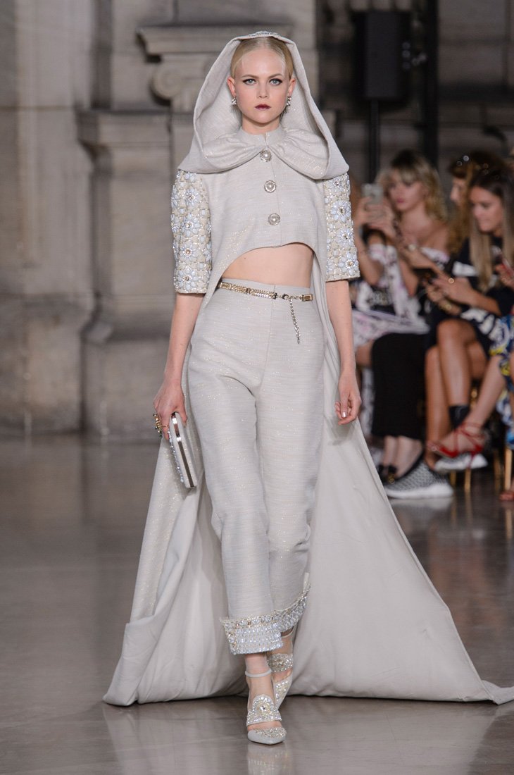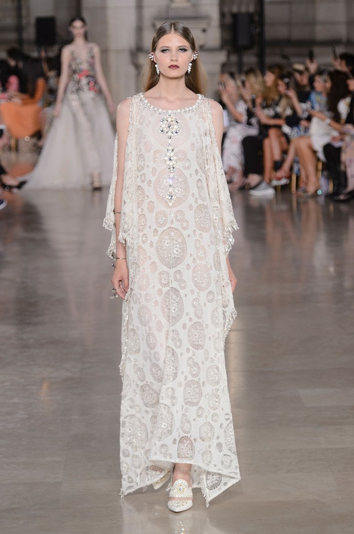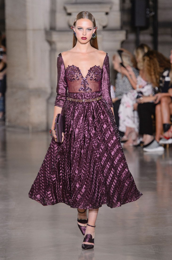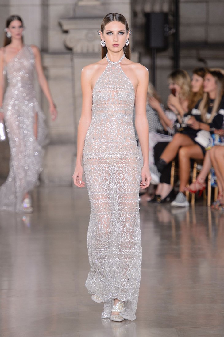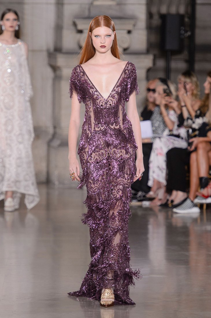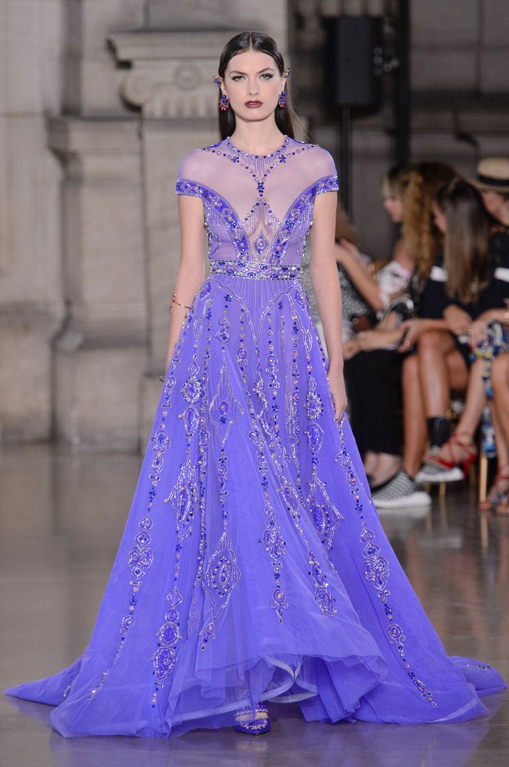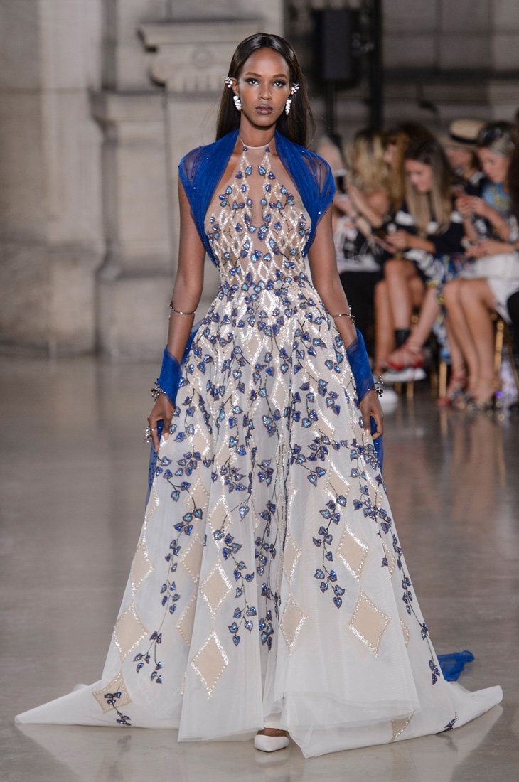 Today, the Lebanese designer Georges Hobeika, who has fashionably made his way to the most elitist Hollywood events, has presented a wave of sumptuous gowns, worthy of his irreverent taste. The show started out as angelic as ever, what with the all-white dresses and the pinkish overall slowly drifting into a billowing cape. Models strutted down the runway in thigh-high gowns, playfully revealing a series of jewel-toned numbers- all of which were carefully bedazzled with oriental embroideries. And then slowly- but surely- the collection turned seductively darker, revealing velvet capes mixed with heart-shaped gowns, brocade wrap dresses and burgundy lamé gowns with statement necklaces and earrings.