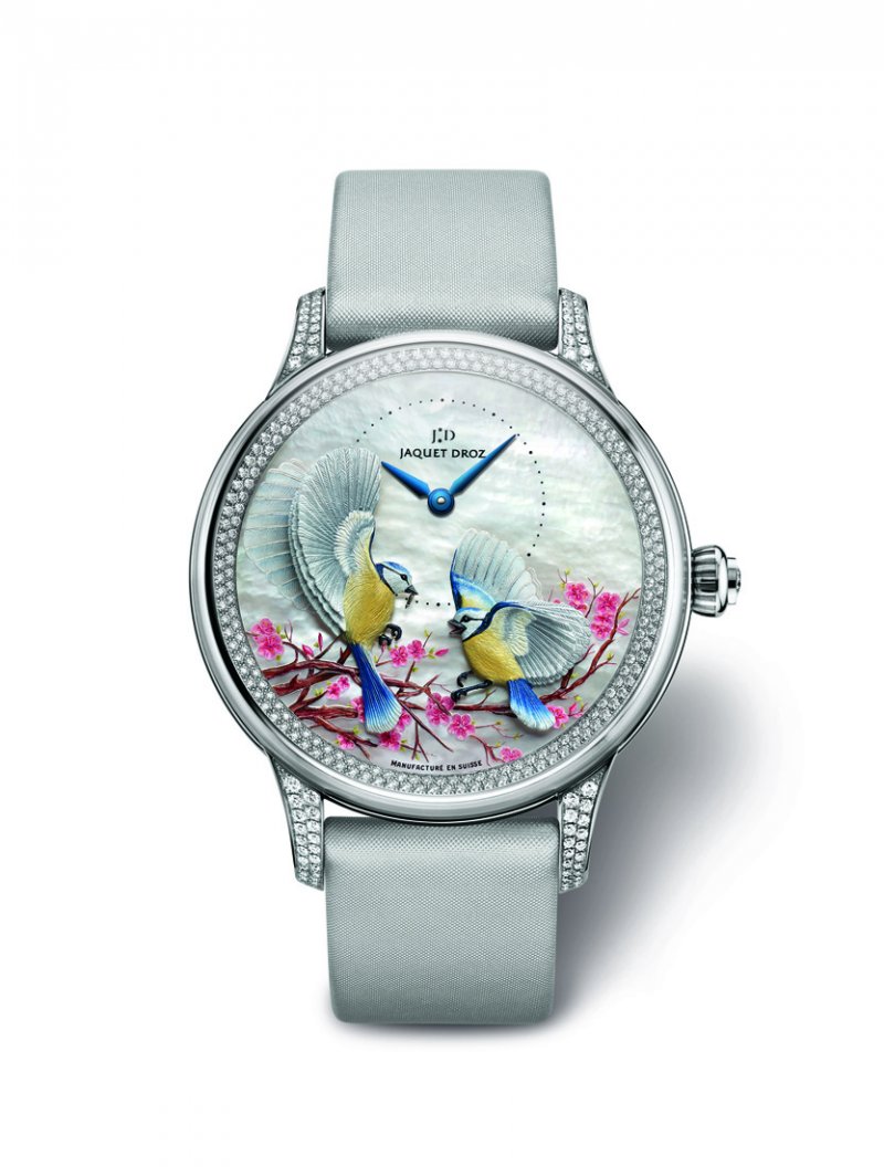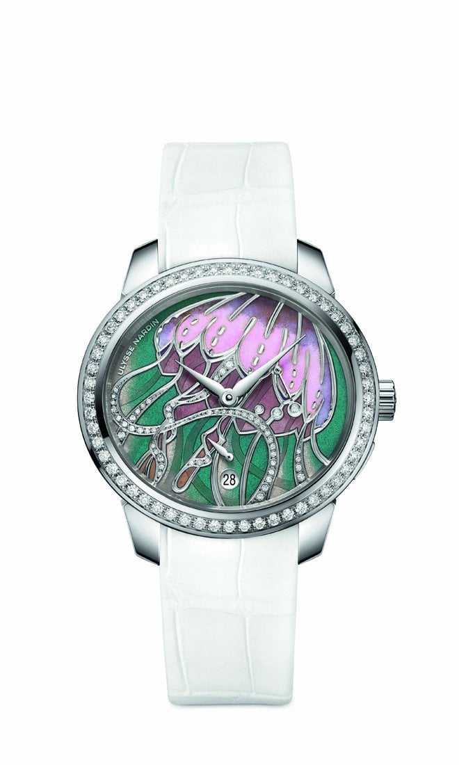 While Dior captured a natural scene on the dial of its Grand Bale Soir Botanic timepiece in a very unique way, Jaquet Droz’s Petite Heure Minute Relief Seasons Spring watch sees two birds standing on a blooming tree on its dial. A butterfly found its place on Bovet’s Papillon dial, and a jelly fish perfectly adorned Ulysse Nardin’s Jade Cloisonné Jellyfish timepiece, while small Hortensias softly decorated the case of Chaumet’s Hortensia Eden watch.