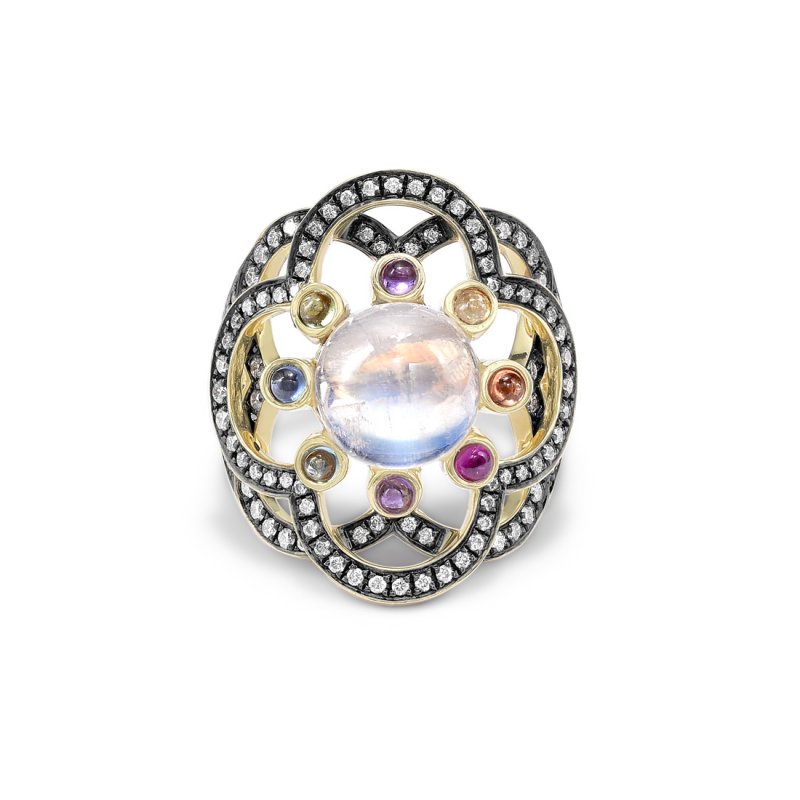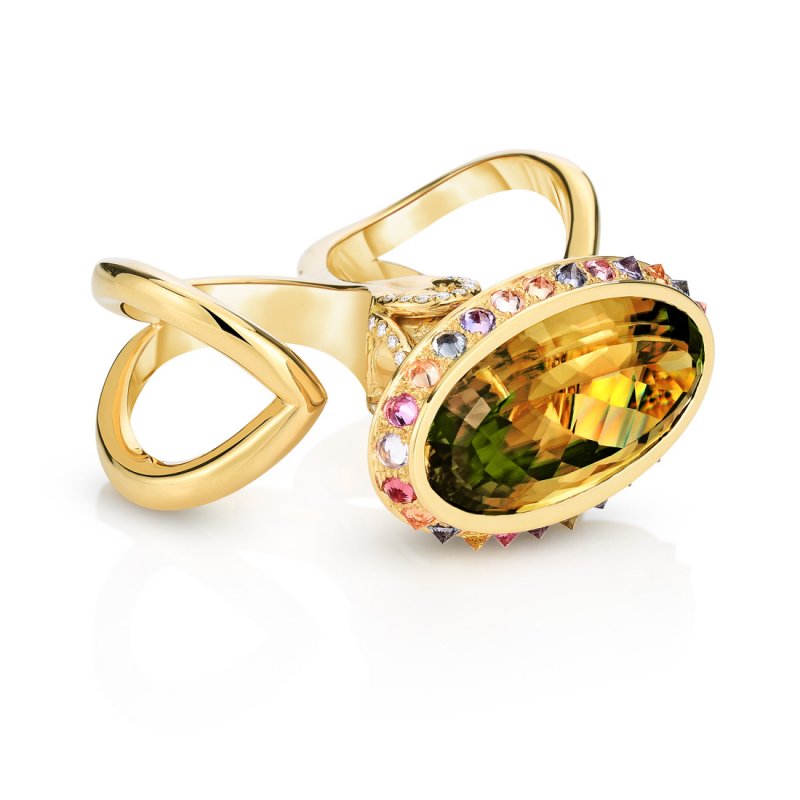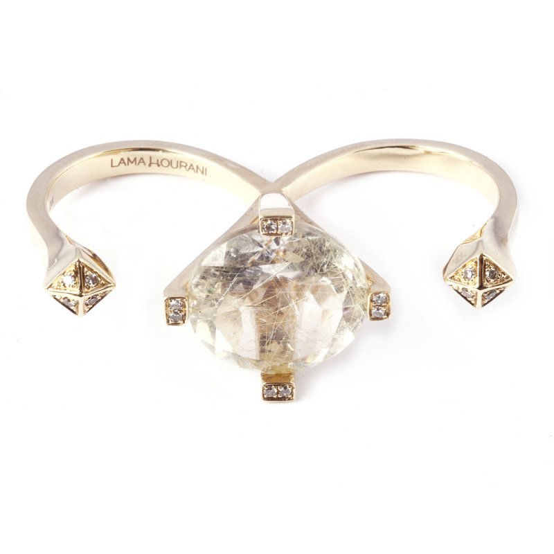Center-stone rings can also come in different styles. They can be dedicated to one finger or can exist in the shape of two-finger rings – adding a bolder touch to your look as reflected through Lama Hourani’s or Ana Katarina’s designs. Another Ana Katarina center-stone ring from her Sumerian collection highlighted the beauty of a grey pearl, while Anabela Chan, Noor Fares, Chaumet and Suzanne Kalan chose a comparably big gem to take center stage. On the other hand, Donna Hourani had a more modern way to reinterpret this jewelry classic and you will actually be surprised by how playful it is!