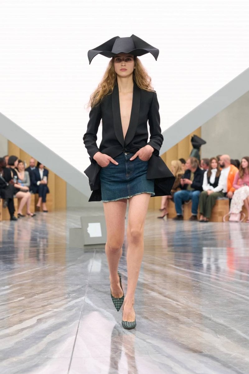 Embracing beauty as a timeless force, the Dior language remains both familiar and surprising. It invites the viewer to dream, to see fashion not as mere clothing but as theater through an emotional, visual journey that defies strict description. In fact, the collection balances harmony and tension. Signs from the House’s past blend with bold, modern gestures to shape silhouettes that speak through a single line, while colors and textures unfold softly yet with deliberate disruptions. From unconventional sculptural hats to restructured order, each piece allows the Dior woman to embody fluidity, confidence, and complexity.