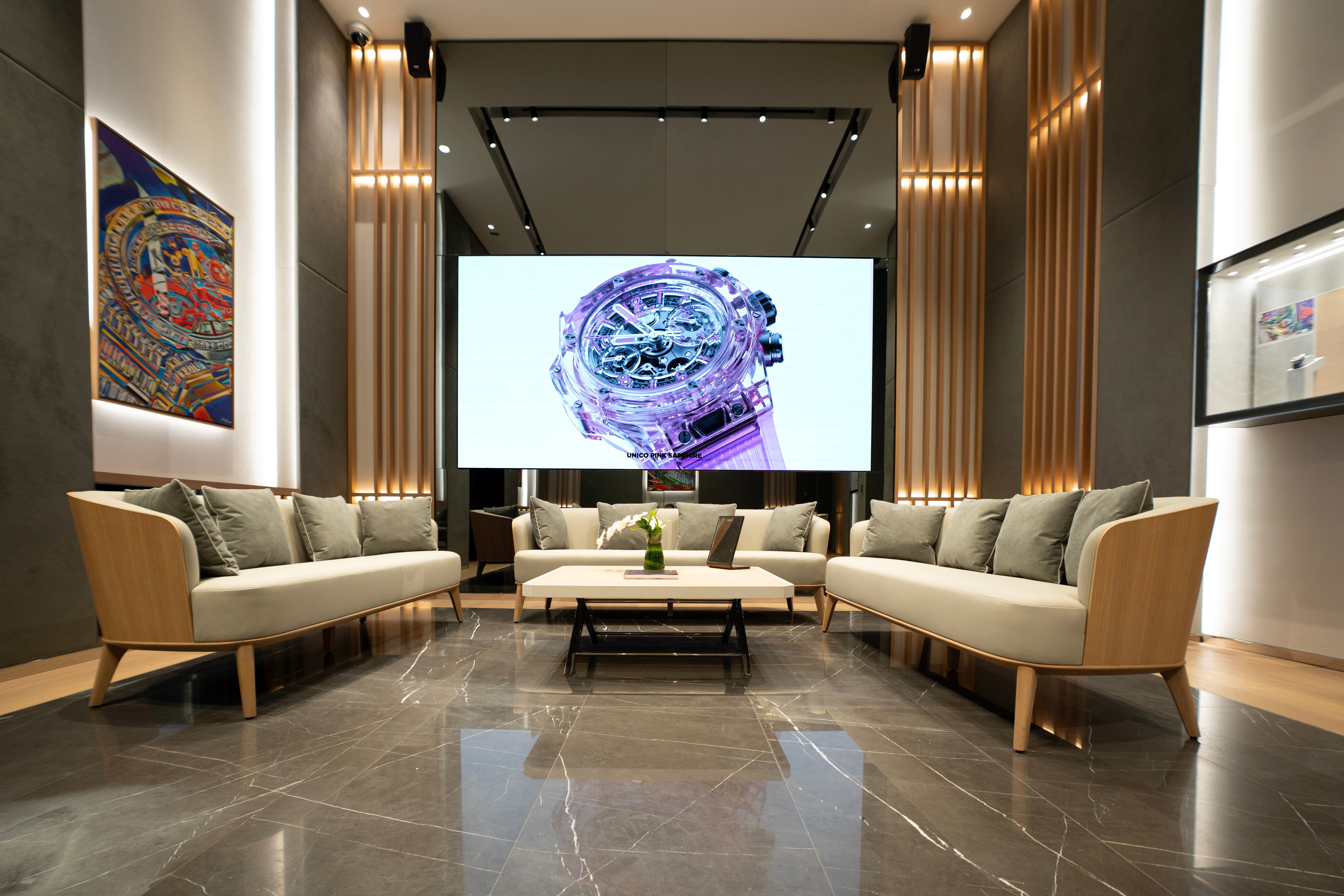 The boutique, opened in partnership with Attar United, spans 246 square meters and perfectly reflects Hublot’s “Art of Fusion” philosophy. Designed as a dynamic experience, it features multiple watch towers, a lounge area, and the region’s first Experiential Room, where visitors can explore Hublot’s pioneering materials – Rubber, Magic Gold, Ceramic, and Sapphire – through interactive displays.