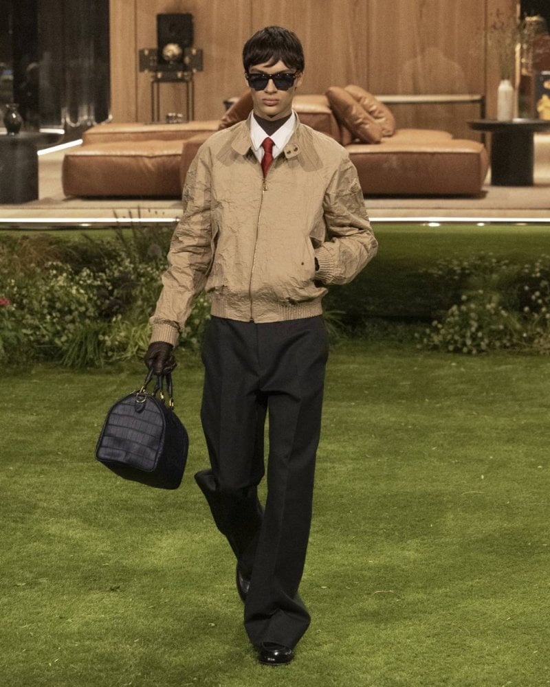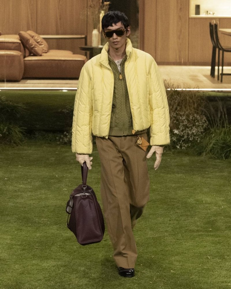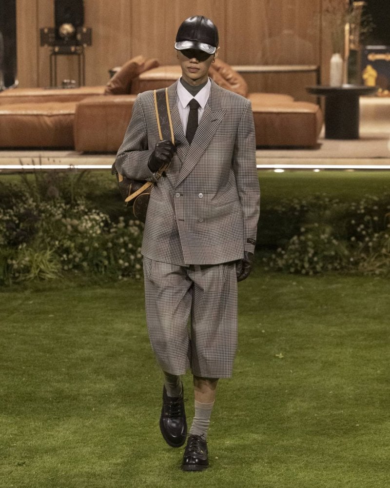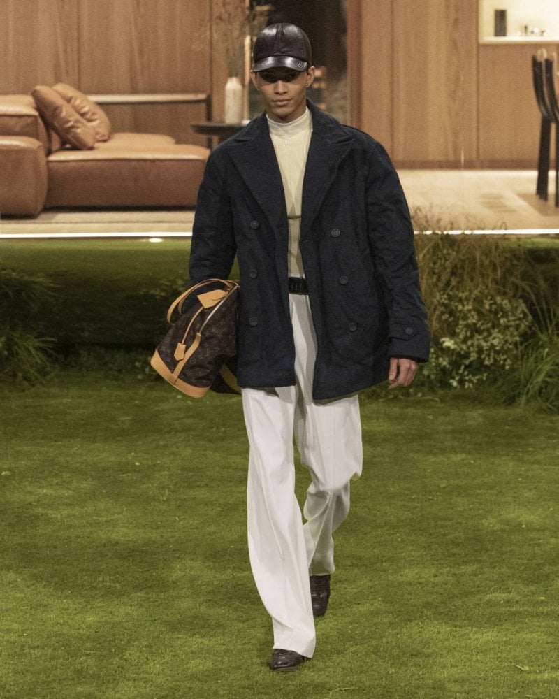 At the heart of the show stood the DROPHAUS, a prefabricated home designed by Pharrell Williams in collaboration with Not A Hotel. Installed within a lush garden, the structure echoed the collection’s central droplet motif and set the stage for silhouettes rooted in classic menswear, reimagined with relaxed volumes and retro-futuristic elegance inspired by 1980s visions of the future. Trompe l’oeil effects transformed luxurious materials into deceptively casual forms, while droplet motifs appeared across ready-to-wear, accessories and the new LV Drop sneaker.