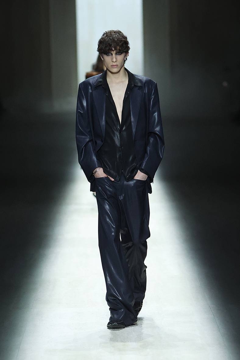Fluid tailoring in liquid fabrics shifted effortlessly from office to after-hours, while hybrid garments – think trackdresses, legging-trousers and ultra-fitted jacket-tops – redefined modern dressing. Feather-trimmed bombers and supple leathers softened structure, adding tactile depth without sacrificing movement.