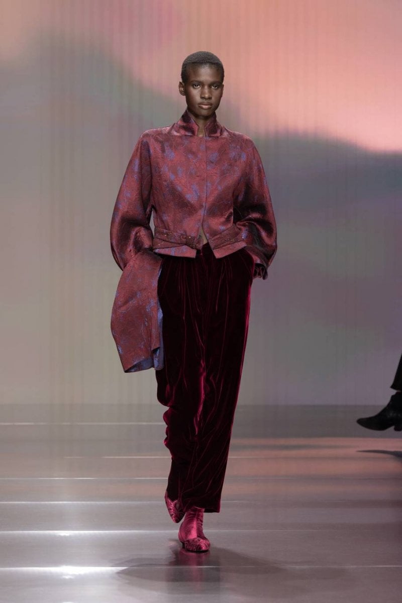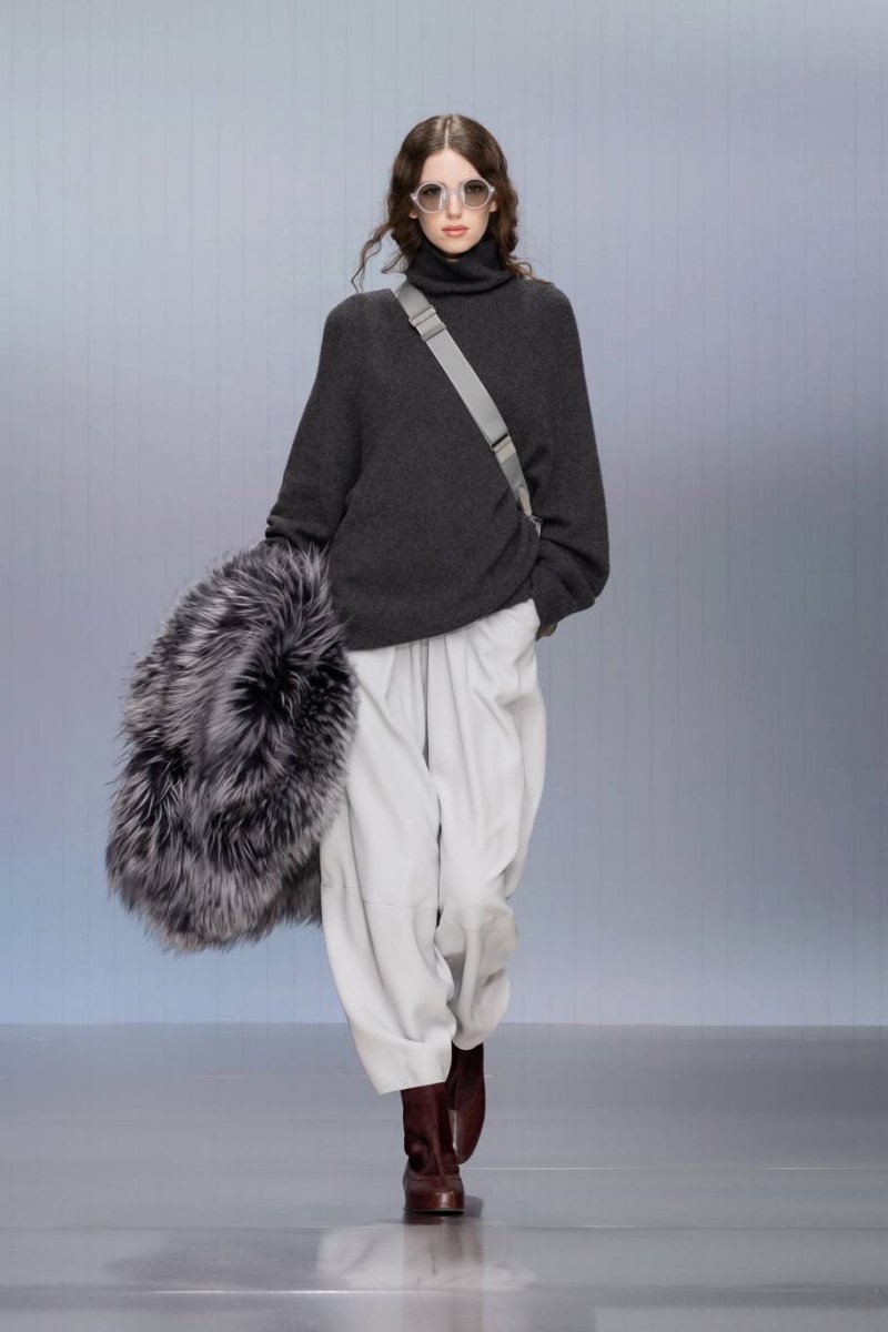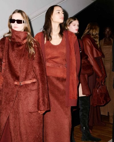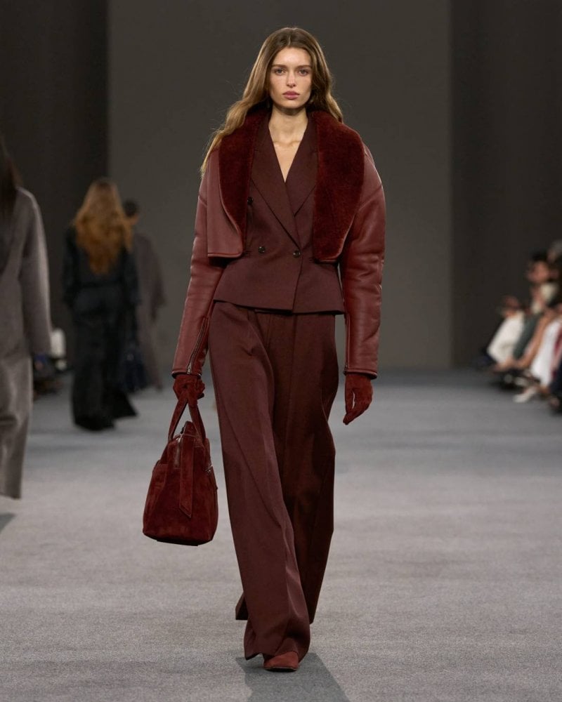 Across the runways, a clear narrative emerged: power dressing, reimagined. Leather dominated in rich espresso tones, faux fur returned with theatrical volume, and eveningwear embraced a darker, more cinematic mood. Yet beneath the drama lay wearability – luxury designed for real life, not just the front row.