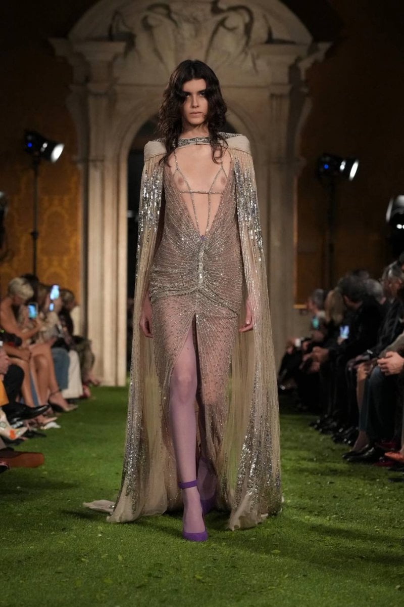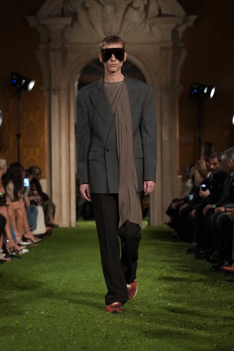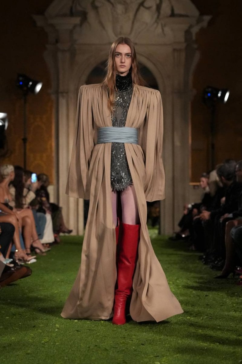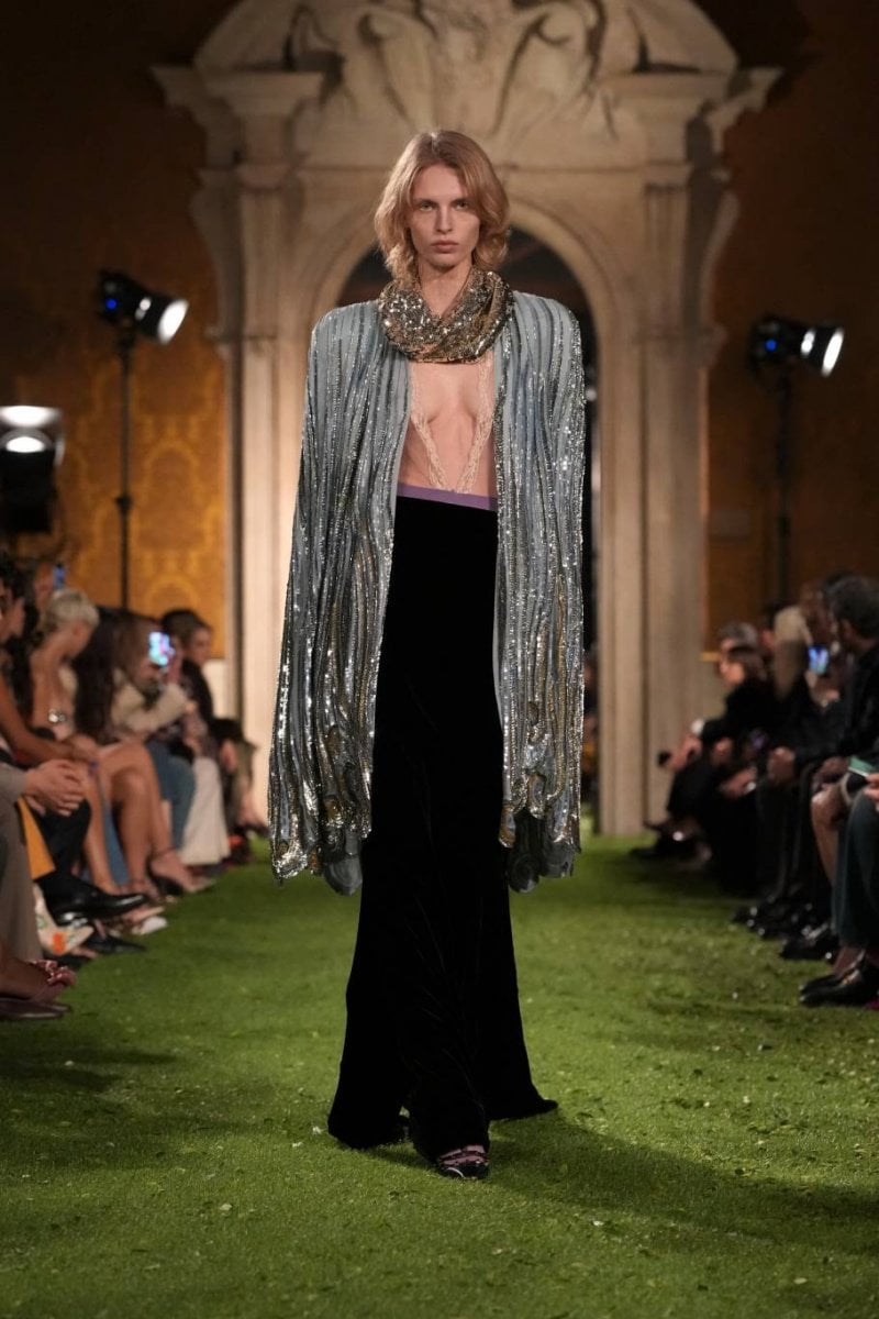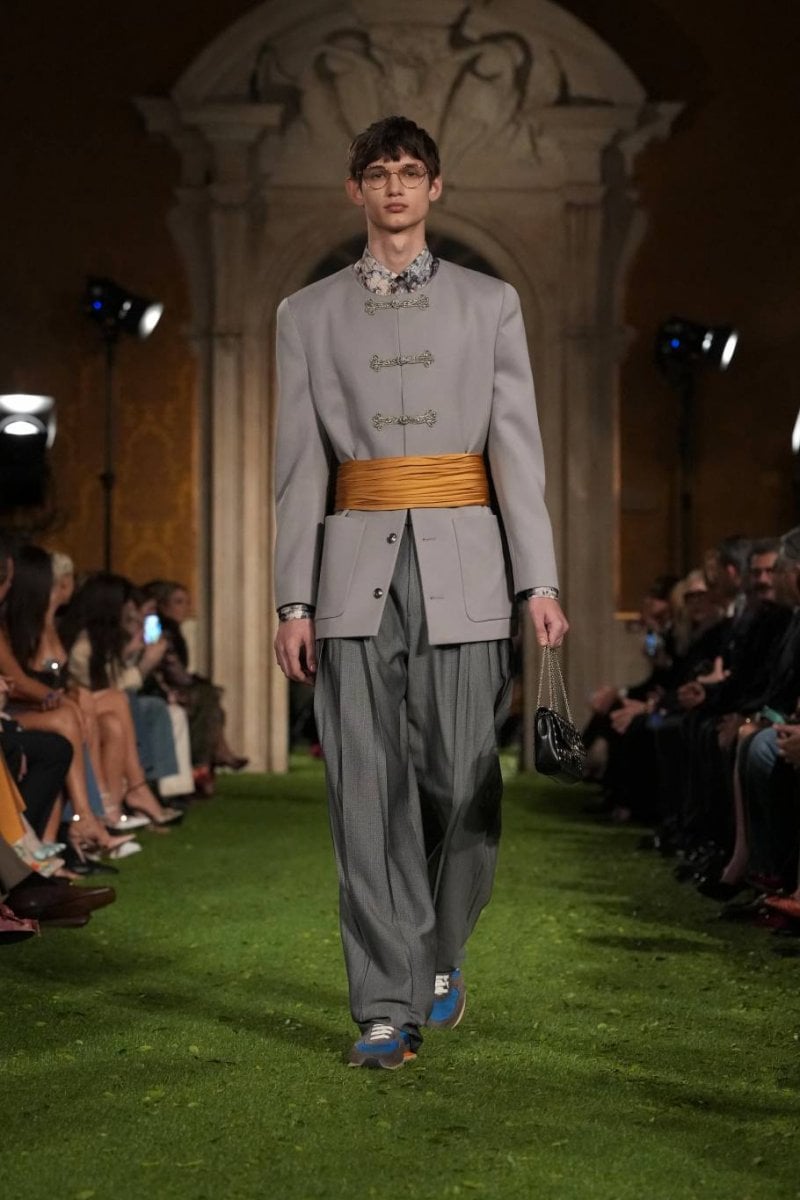 In this approach, the act of dressing becomes more than adherence to style. Instead, garments function as systems that shape how the body moves, appears and occupies space. Structure, gravity and lightness interact across the collection, creating forms that oscillate between control and release. With “Interferenze”, Valentino proposes fashion as an open system of tensions – where order is celebrated, but also constantly questioned and reimagined.